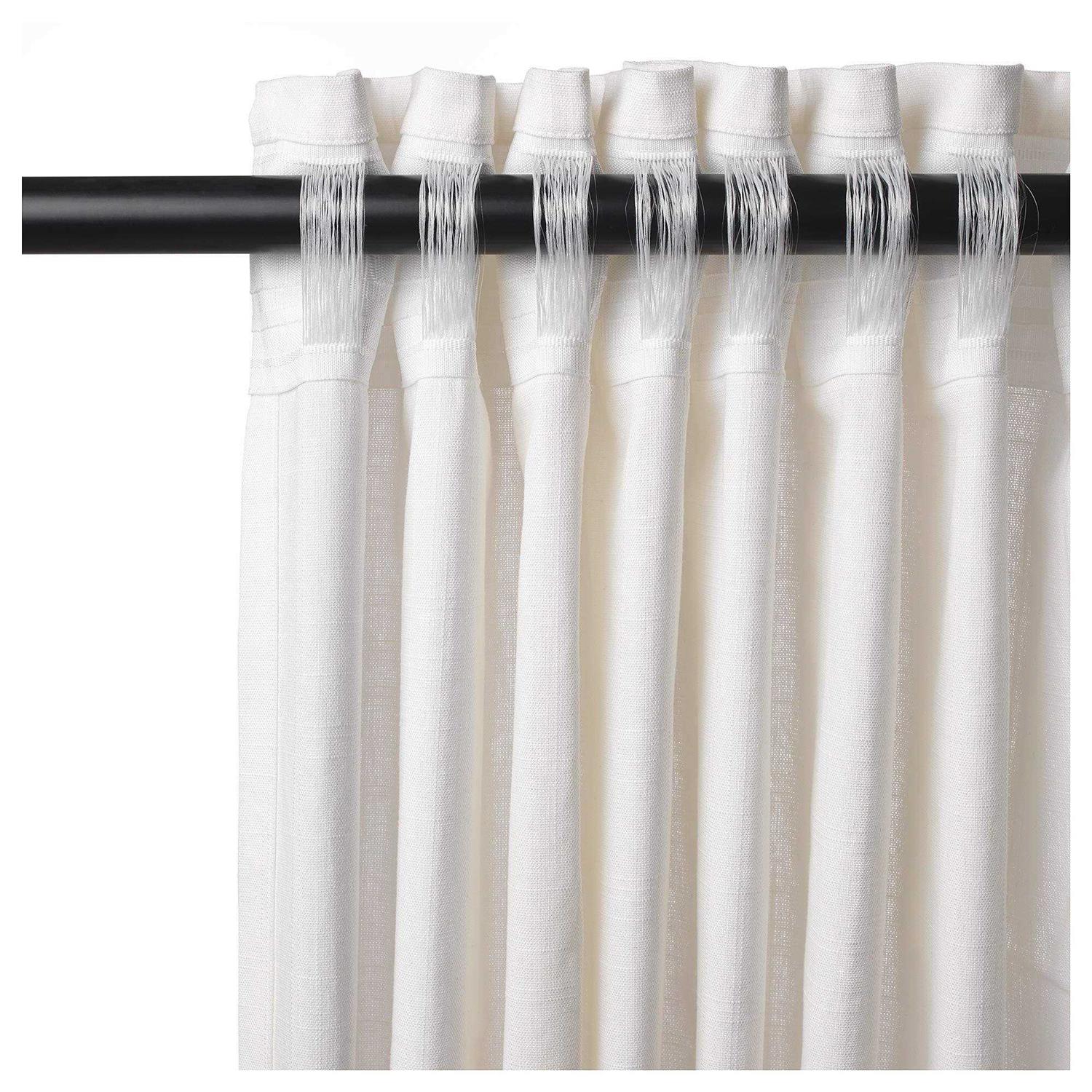 The white color of the curtain leans more towards off-white. Package Includes: 2 Curtain Pairs (Total 4 Curtain Panels) Dimension of each Curtain Panel: L:98 x W:57 Weight of each Curtain Pair: 4 lb 3 oz Color : White Size : 57 x 98 The curtains lower the general light level and provide privacy by preventing people outside from seeing directly into the room. The curtains can be used on a curtain rod or a curtain track. The heading tape makes it easy for you to create pleats using RIKTIG curtain hooks (Hooks sold separately). You can hang the curtains on a curtain rod through the hidden tabs or with rings and hooks. Good to know Contains 2 panels with tie-backs. The measurement applies to each curtain panel. Care instructions Machine wash very hot, normal cycle. Do not bleach Tumble dry, medium, normal cycle Iron high Do not dry clean Shrinkage 4%. Product dimensions Length: 98 Width: 57 Cloth Material 100 % cotton