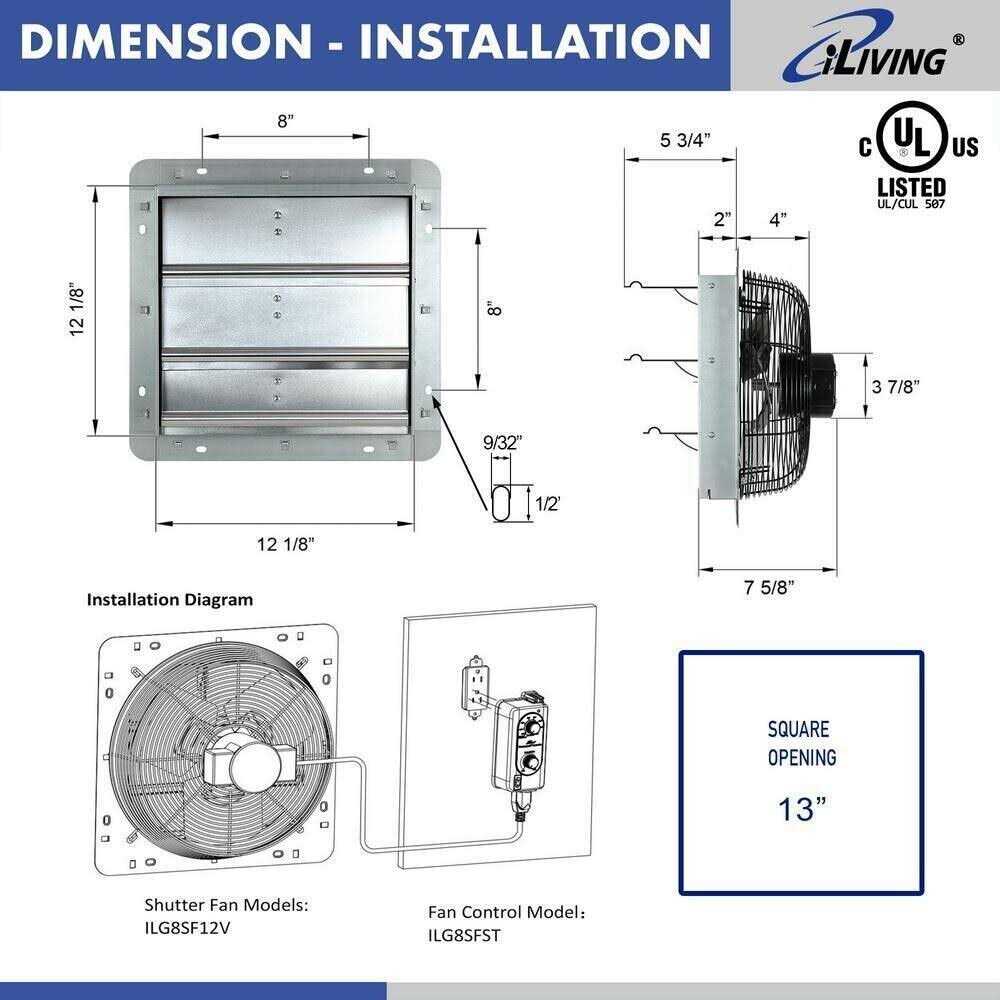 The iLIVING Shutter Exhaust Fan is perfect for removing excess heat, moisture, and unpleasant odors from virtually any commercial location, including restaurants, factories, warehouses, barns, and greenhouses. This fan features aluminum blades, OSHA compliant wire guards, and automatic shutters that open and close in tandem with the operation of the fan. The completely enclosed motor is thermally protected and permanently lubricated. Equipped with the newest Thermospeed Controller which can easily control the temperature and speed. Auto cycle On/OFF at your desired temperature. The fan comes fully assembled out of the box; only installation required is the electrical hardwiring.