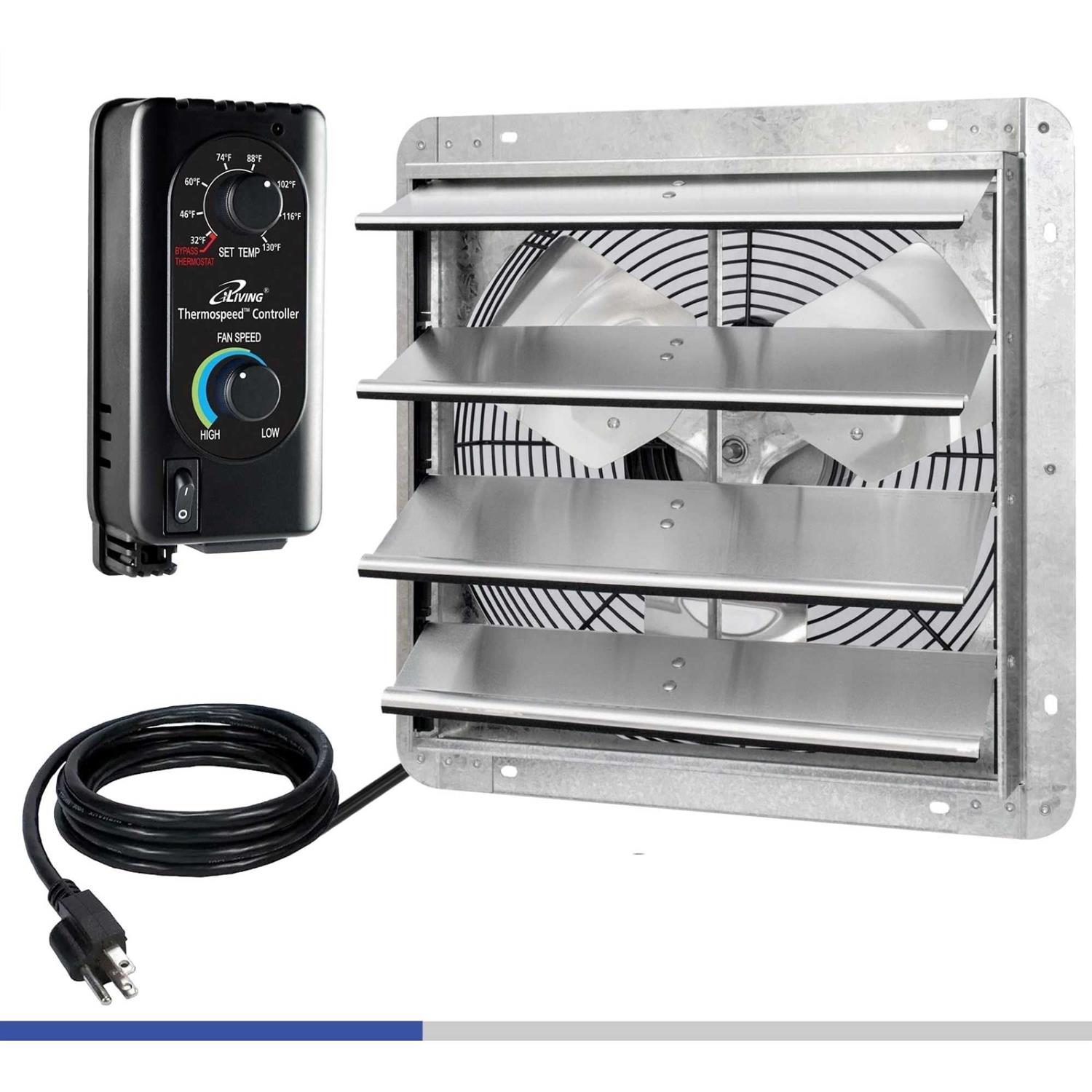 iLIVING 16 in. Wall Mounted Shutter Exhaust Fan, Automatic Shutter, with Thermostat and Variable Speed controller