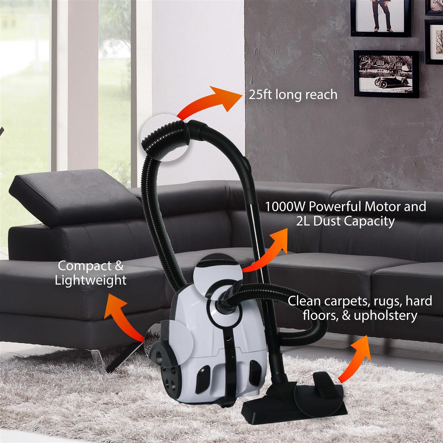 Impecca Lightweight Bagged Canister Vacuum Cleaner for Carpet ,White
