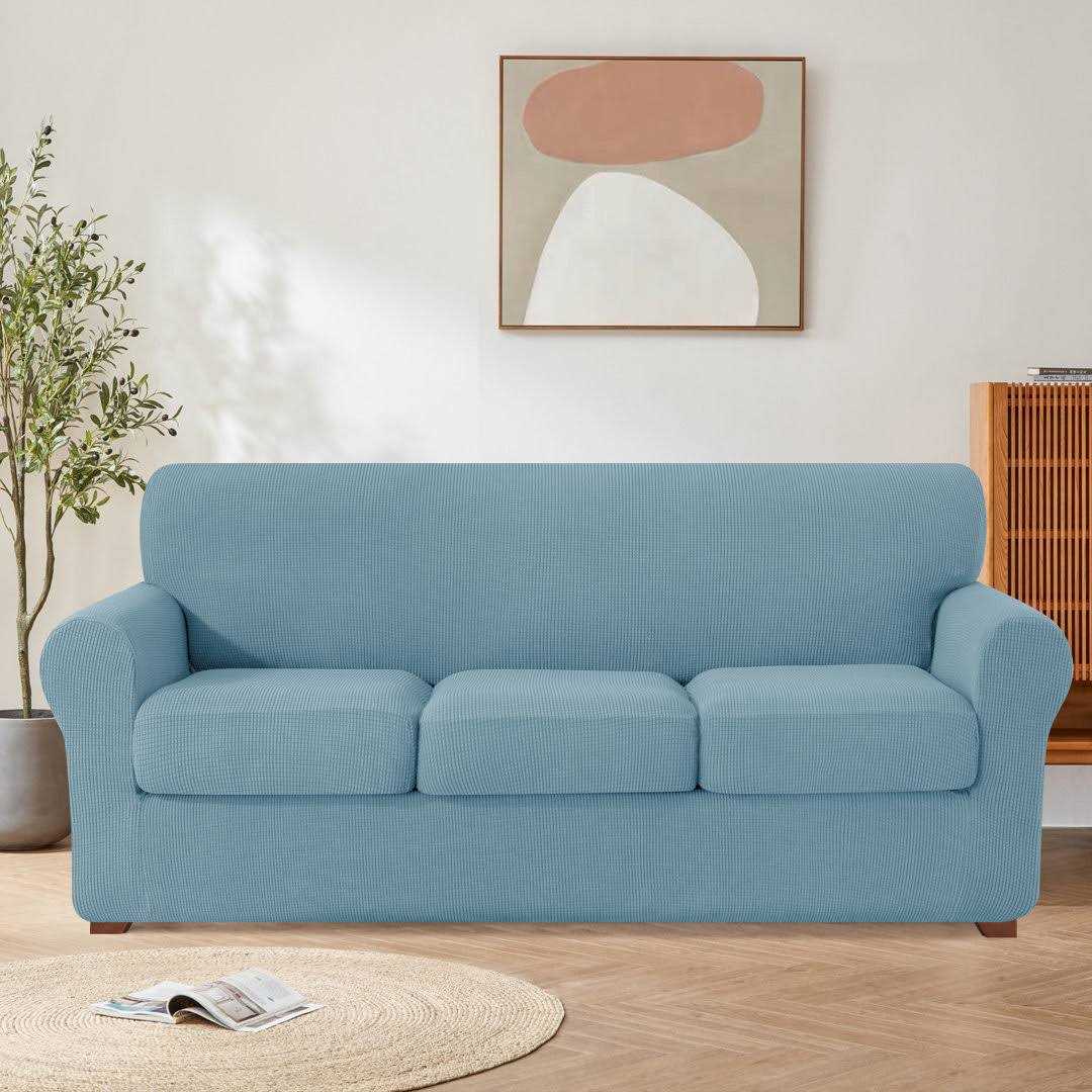 Transform your room in an instant The ultra-versatile textured grid slipcover creates a clean foundation that complements any decorating style. This collection creates the look of custom upholstery for so much less with its individual seat cushion covers. The subtle geometric design in a slightly raised grid pattern adds cozy texture. This favorite fabric is available in our greatest array of colors to accommodate any decorating style. Also this slipcover can adjust the present size according to your furniture cause it’s perfect spandex. Featuring a secure and exacting fit including the elastic band that attaches around and behind furniture legs. Give an update to tired furniture and stay on budget with this slipcover.