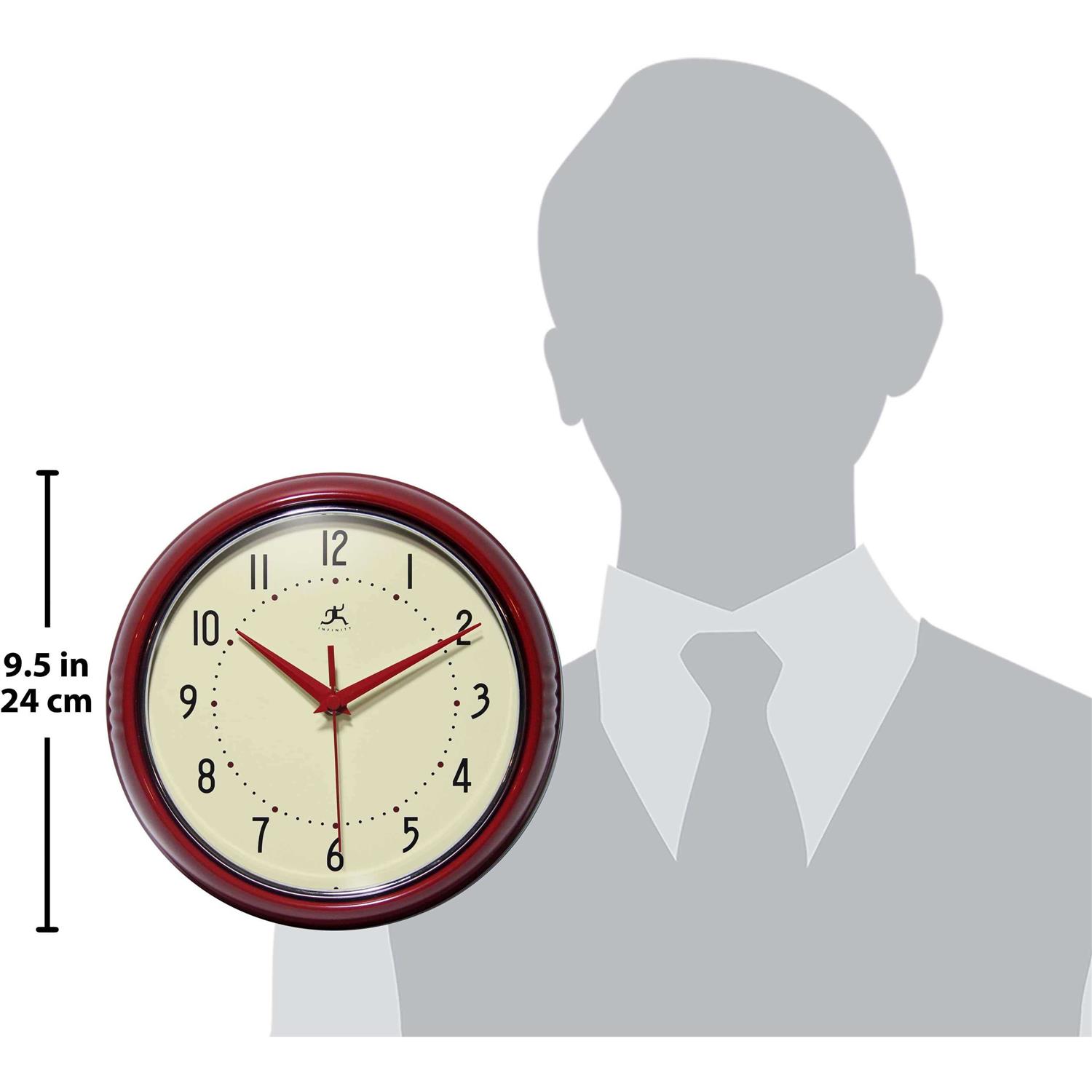 Infinity Instruments- Round Metal Retro 9.5 in. Wall Clock, Red