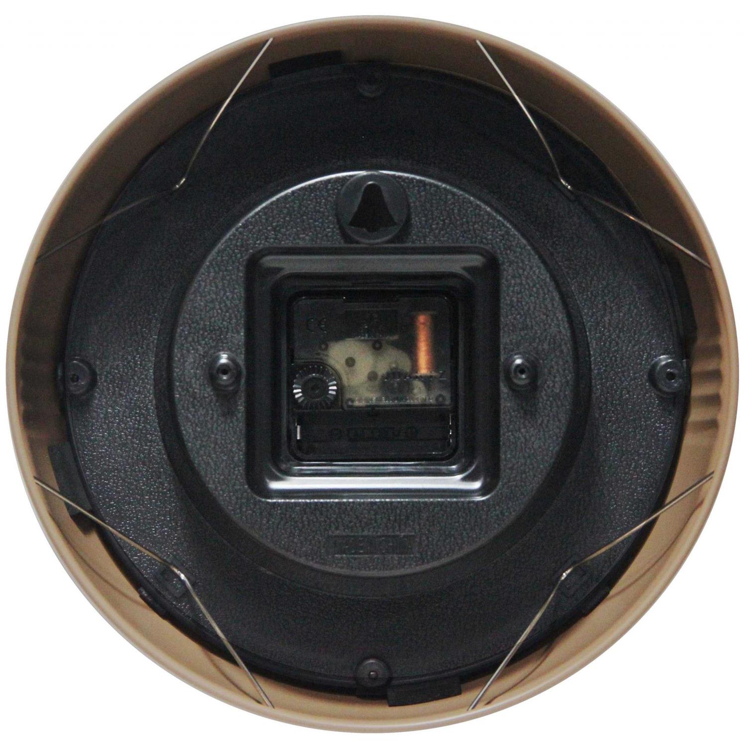 - 9.5″ Round Metal Clock with Convex Glass Lens, 3.15″ Total Depth, Weighs 1.2 Pounds