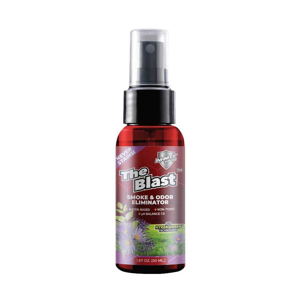 The Blast by Infinity Shields is the most advanced award-winning water-based smoke & odor eliminator on the planet! This product will not mask, it eliminates on contact and keeps working. The Blast (1.67oz) creates an invisible long-lasting barrier of protection on the treated surface! The Blast eliminates cigar, cigarette, and cannabis smoke odor, as well as the worst putrid odors imaginable.