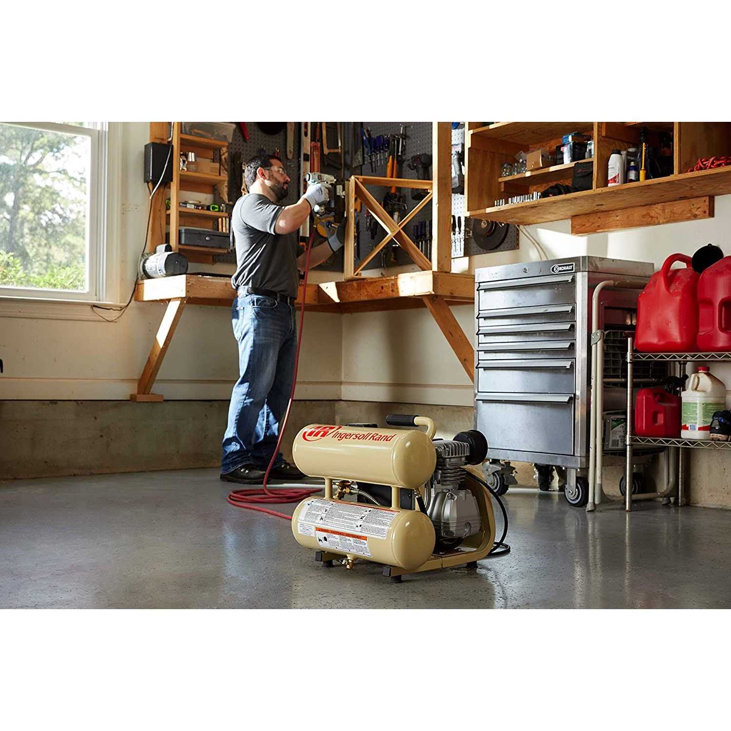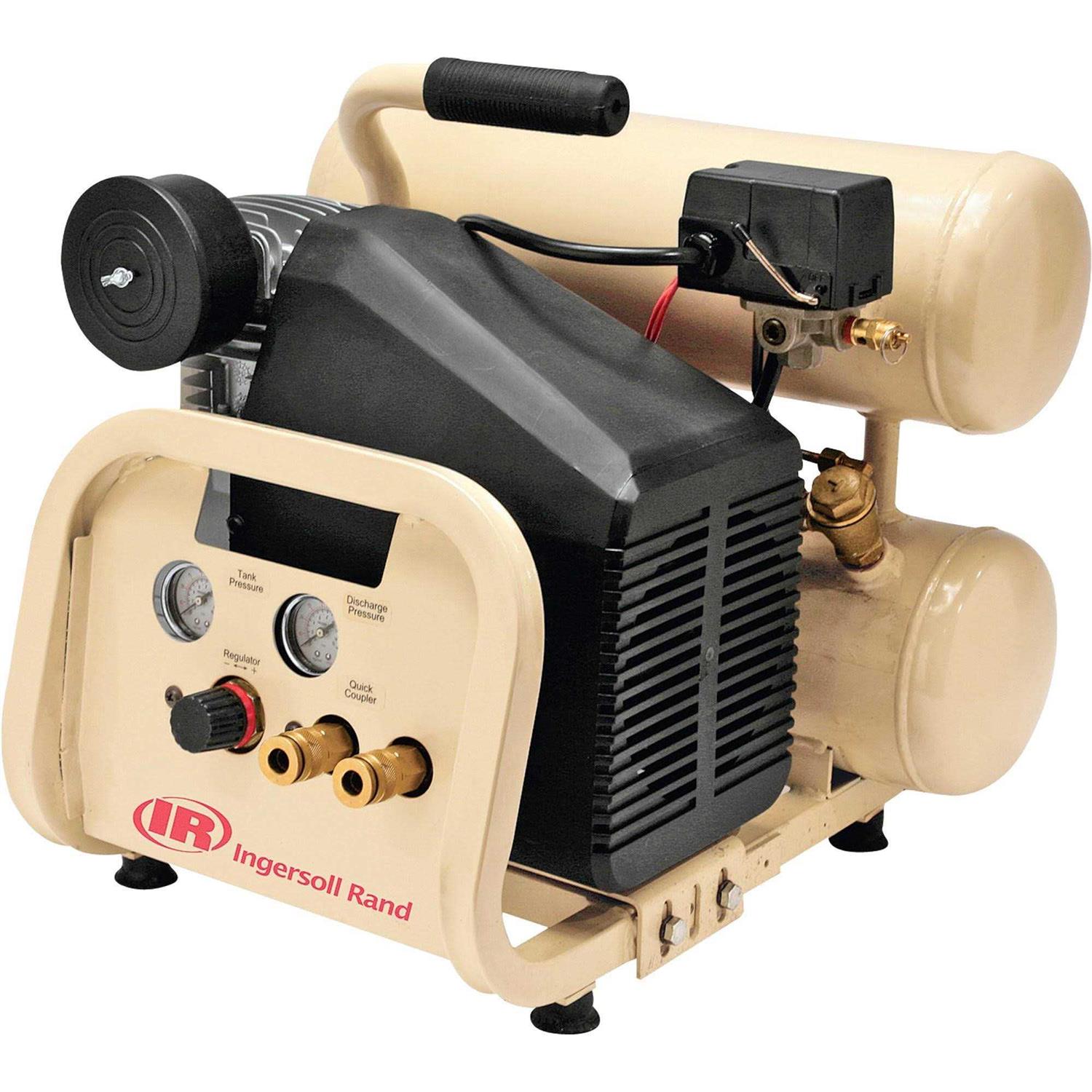 Ingersoll Rand utilizes over 140 years of experience to bring you the best quality in compressed air. Get the same brand that all of the professionals trust for all of your around-the house needs. Ingersoll Rand oil driven twin-stack 4 Gal. electric-driven air compressor with 2 HP is designed to provide power durability and portability on the job site. From interior trim and finish to roofing and decking the twin-stack can do the job. Built to last this oil-lube compressor with a durable cast-iron cylinder is designed for the toughest 100% continuous duty applications. The twin-stack compressor package comes standard with two 1/4 in. universal coupler front panel mounted regulator and pressure gauge 4 Gal. twin tanks all season select lubricant and a power cord.