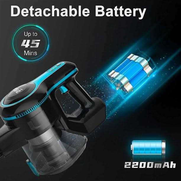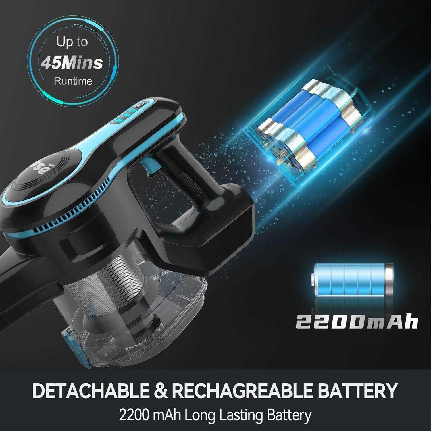 - 2200 mAh battery capacity, users can enjoy up to a maximum of 45 minutes of continuous cleaning of their homes.
