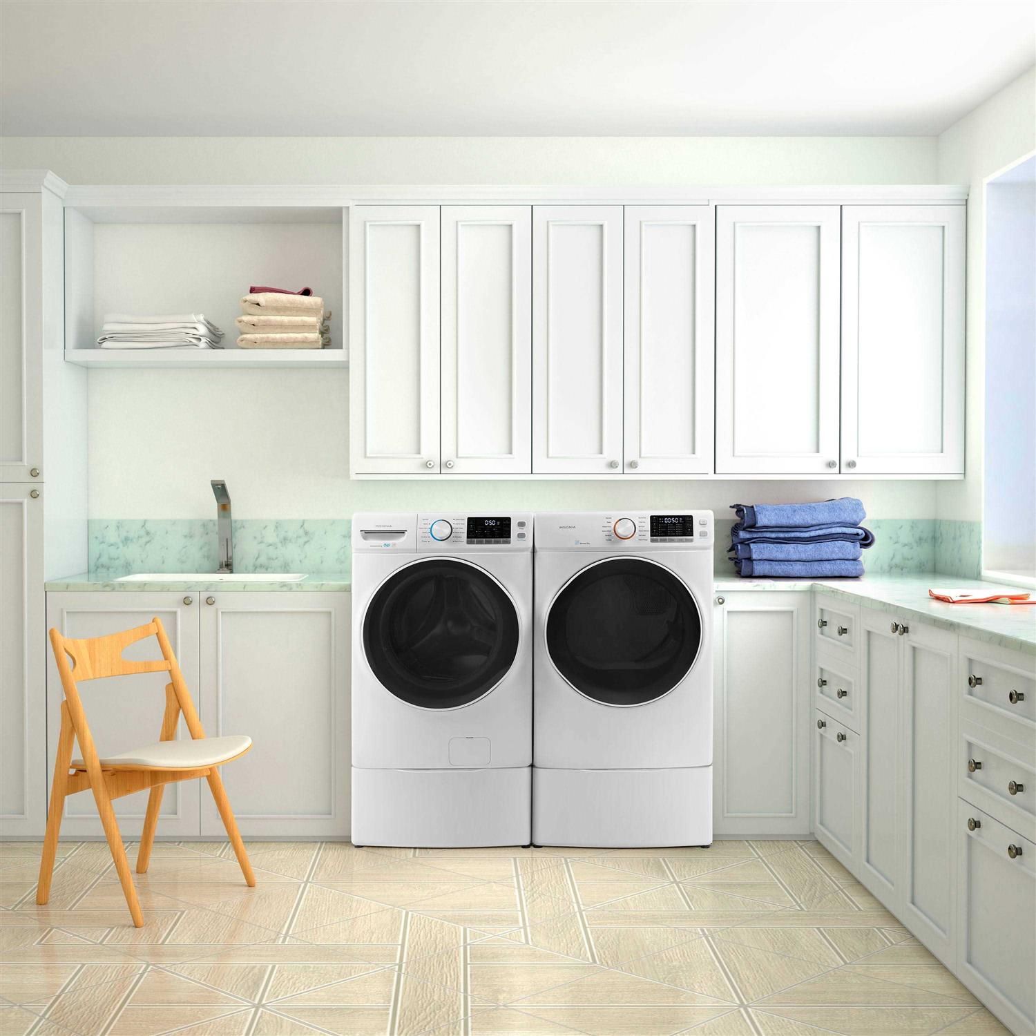 • White design with recessed handle Matches your Insignia Washer or Dryer and blends with your existing décor.