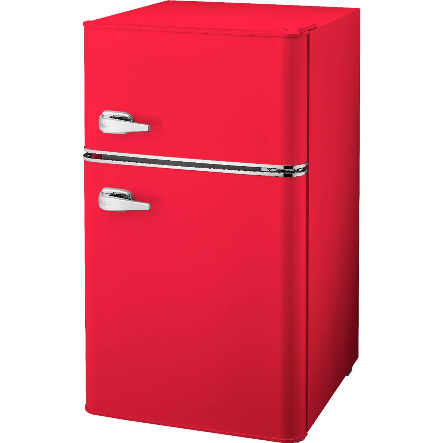 Old-school metal handles and a hot rod red color give this fridge a retro charm that will stand out as a great accent piece.Compact but spacious.