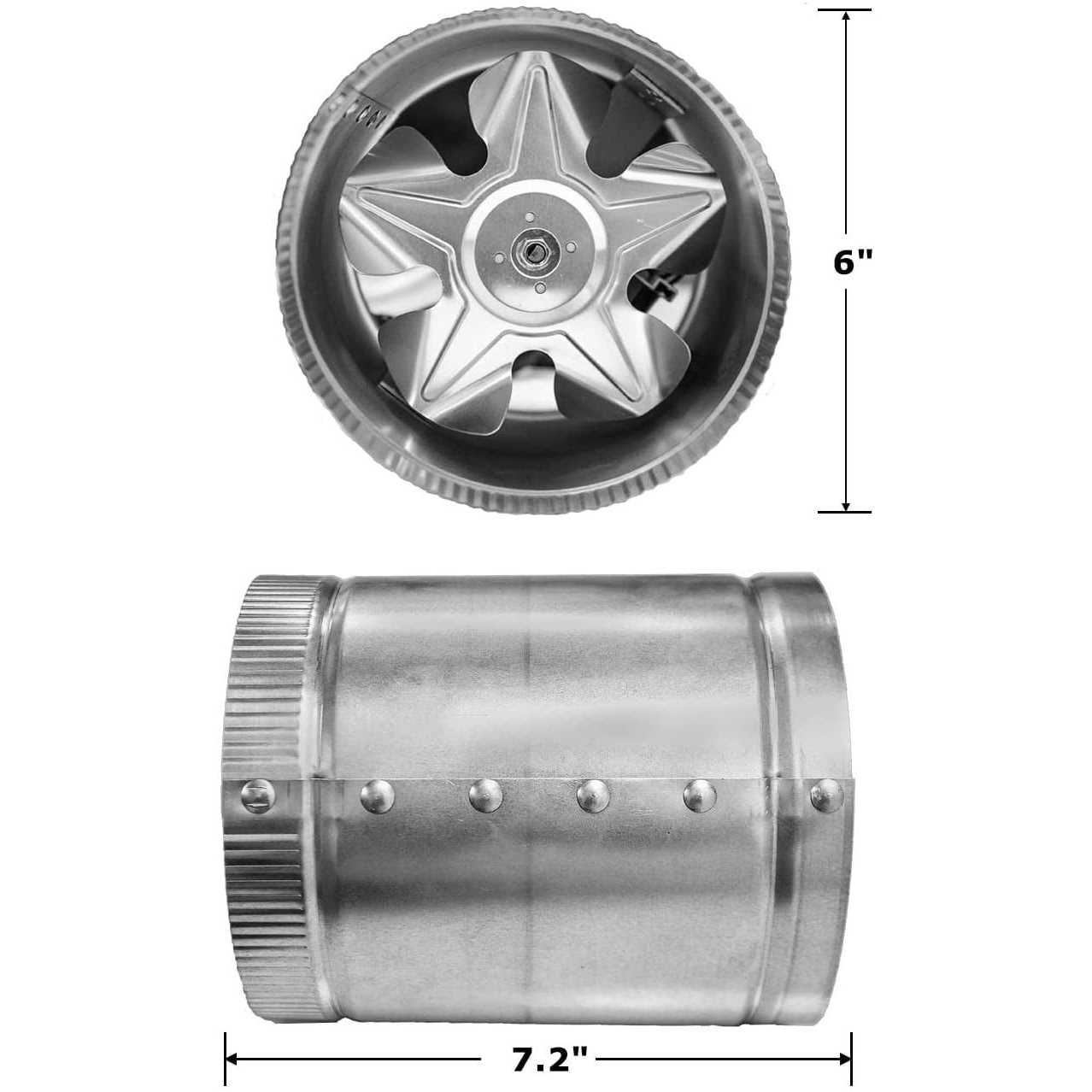 - Fan specification: diameter: 6 in. air flow: 240 CFM, speed: 2950 RPM, voltage: 110-Volt/120-Volt, wattage: 37-Watt, noise level: 48 db