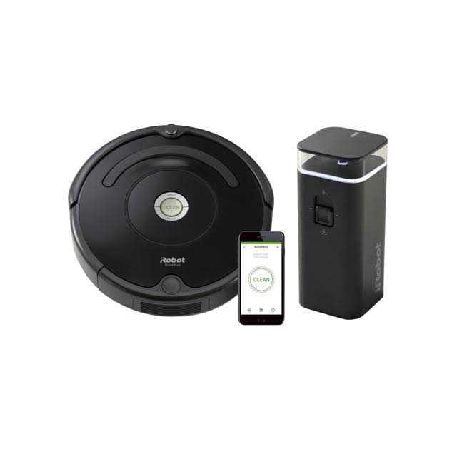 The Wi-Fi connected Roomba 675 robot vacuum uses a patented 3-Stage Cleaning System with Dual Multi-Surface Brushes, a specially designed Edge-Sweeping Brush, and vacuum suction to clean everything from small particles to large debris off your floor. Dirt Detect Technology recognizes concentrated areas of dirt and provides additional cleaning in those spots, and the iRobot HOME App lets you clean and schedule conveniently from anywhere, at any time. Now compatible on devices with Amazon Alexa and the Google Assistant.i – Robot Roomba 675 Wi-Fi Connected Vacuuming Robot is built using over 25 years of robotics expertise and innovation. – Loosens, Lifts and Suctions Dirt from Your Floors – Patented 3-Stage Cleaning System uses Dual Multi-Surface Brushes, a specially designed Edge-Sweeping Brush, and vacuum suction to attack everything from small particles to large debris on your carpets and hard floors. – Dual Multi-Surface Brushes – Multi-Surface Brushes work together to grab dust, dirt, and large debris to help thoroughly clean your floors. The first brush loosens, lifts, and pulls in dust, dirt, and hair from floors and in carpet, the second accelerates debris into the suction channel. – Dirt, Meet Your Match – Patented Dirt Detect sensors alert Roomba to work harder on concentrated areas of dirt, such as high-traffic zones of your home. – Clean and Schedule On-the-Go – The Roomba robot vacuum can scheduled to clean up to 7X per week so that your floors can be clean every day. Control and schedule cleanings with the iRobot HOME App. You can monitor cleaning activity, view cleaning history, and watch maintenance videos. – Want Cleaner Floors? Speak up! The Roomba 675 robot vacuum works with Amazon Alexa and the Google Assistant. – The Amazon Alexa skill is available in English in the United States. – The Google Assistant and Roomba vacuuming robot integration is available in English to customers in the United States. – Intelligently Navigates Your Home – Full suite of intelligent sensors guide the robot under and around furniture to help thoroughly clean your floors. – Always Ready to Clean – Runs for up to 90 minutes* before automatically docking and recharging. *Tested on hard floors. – Won’t Fall Downstairs – Cliff Detect sensors prevent the robot from falling down stairs or tumbling over drop-offs. – Take Cleaning to the Edge – Edge-Sweeping Brush is specially designed at a 27-degree angle to sweep debris away from edges and corners. – Featuring These Other Roomba Robot Essentials – Cleans carpets and hard floors: The Auto-Adjust Cleaning Head adapts its height to keep the Multi-Surface Brushes in close contact with different floor surfaces, directly engaging with both hard floors and carpets. – Always ready to clean: The robot automatically returns to the Home Base charging station to recharge at the end of a cleaning cycle or when the battery is running low. – Designed to clean under furniture: At just 3.6 inches tall, the Roomba robot vacuum is designed to clean under beds, sofas, toe kicks, and other hard-to-reach areas.
