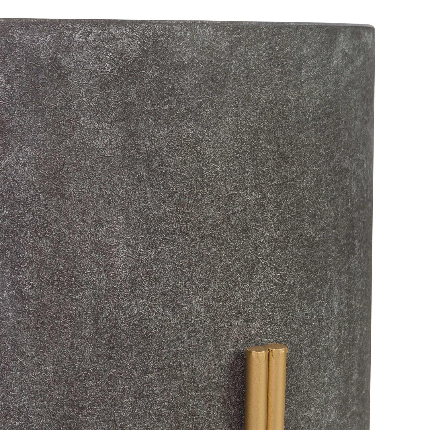 - Dark grey and gold finish.