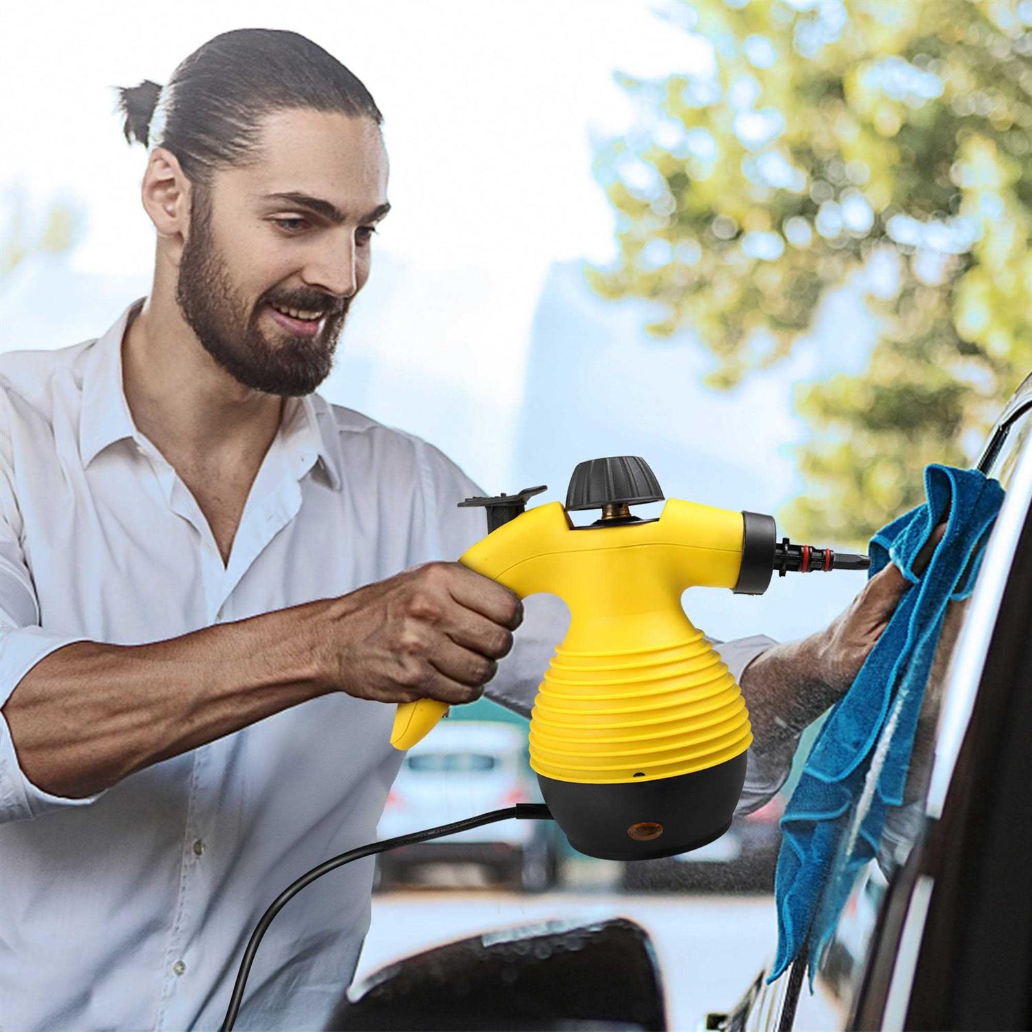 Jaxpety Handheld Multi-Purpose Steam Cleaner with 9-Piece Accessories for Stain Removal, Carpets, Curtains, Car Seats, Size: 11, Yellow