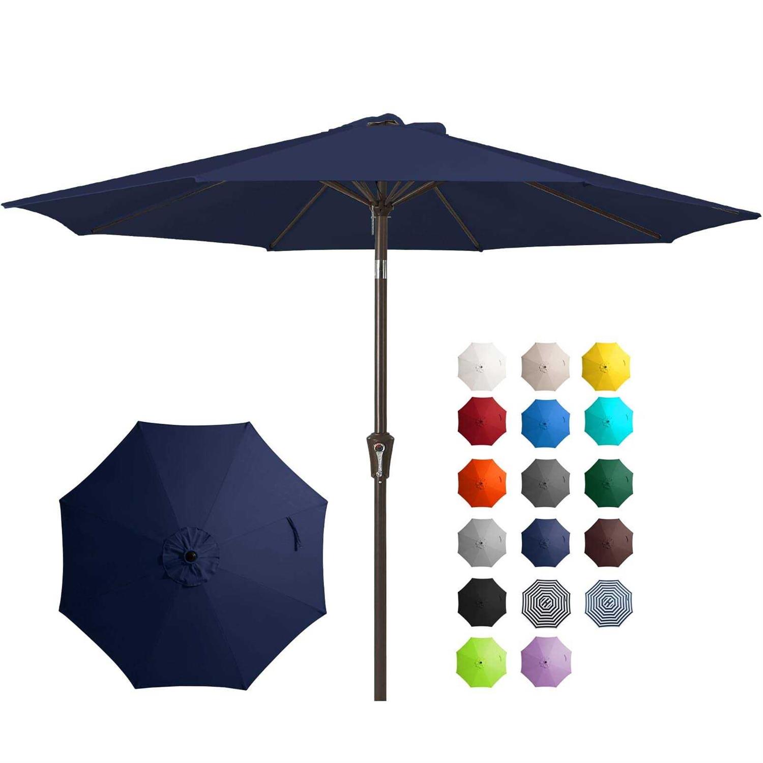 JEAREY 9ft Outdoor Patio Umbrella Outdoor Table Umbrella with Push Button Tilt and Crank, Market Umbrella 8 Sturdy Ribs UV Prote