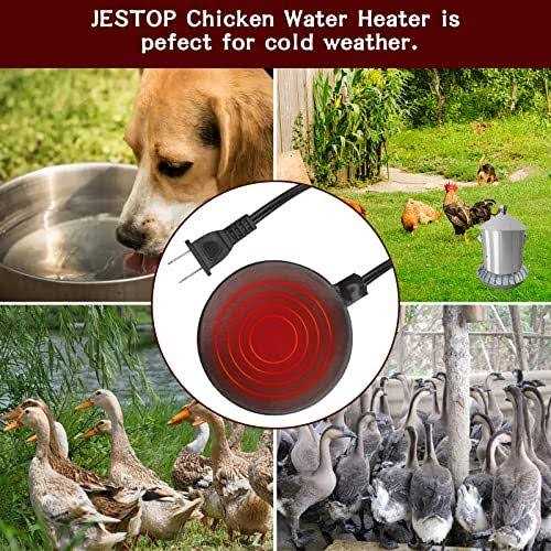 Poultry Fountains & Waterers by JESTOP. Details:120V 35w Heated Pad: our chicken water heater works at 35W and uses 120V voltage to save energy and electricity; Each poultry water heater comes with a 1.2 m/ 47.