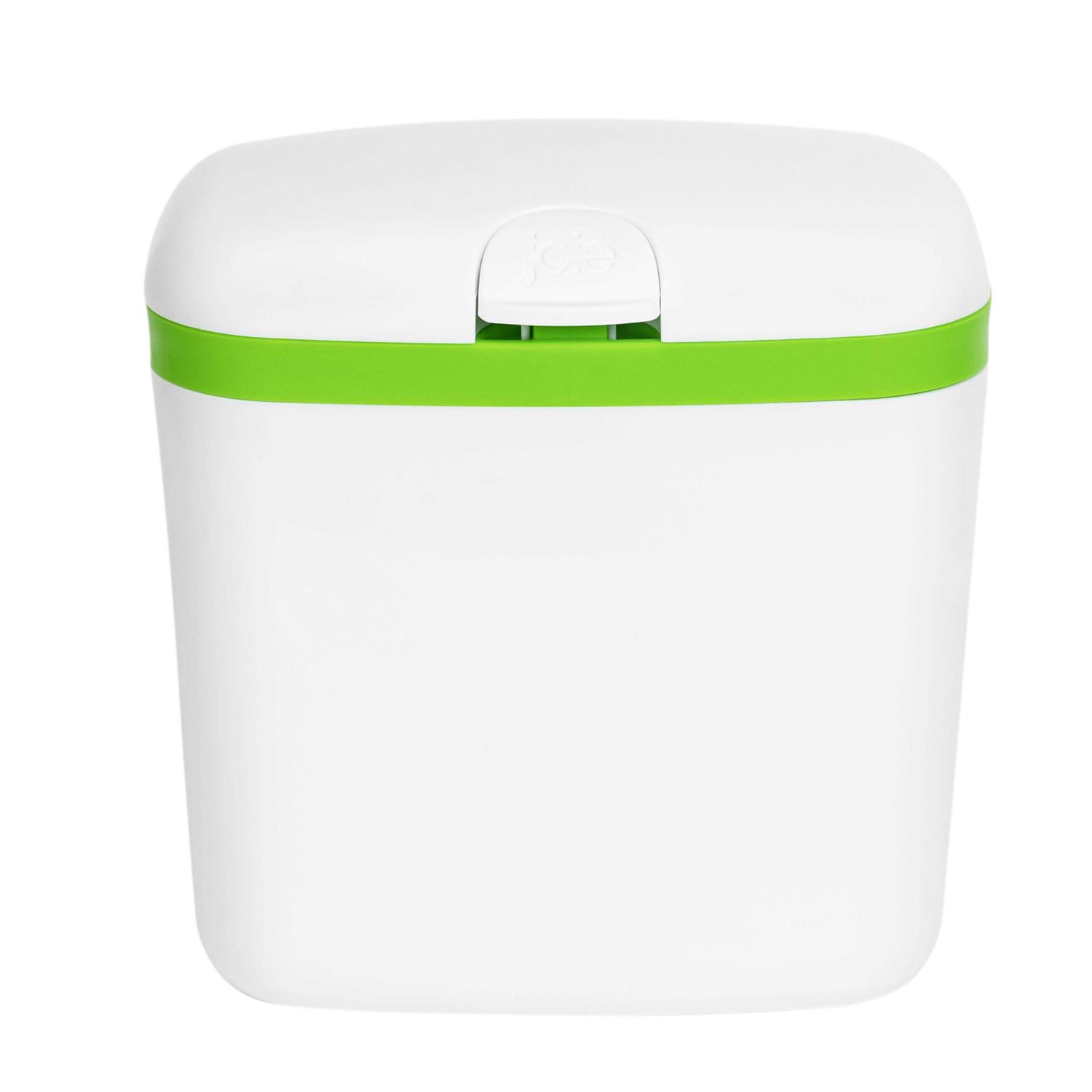 Joie Countertop Compost Bin with 24 Bags. This Countertop Compost Bin allows you to easily store organic waste indoors. This Joie Countertop Compost Bin has a simple, clean design and is ideal for any kitchen countertop. It includes a separate rim for compost bags to fit neatly inside without any overhang. Locking button mechanism seals in odor! Simple green and white design looks good in any kitchen. Made from BPA free plastic. Compact design is ideal for any countertop. Dishwasher safe for easy cleaning.