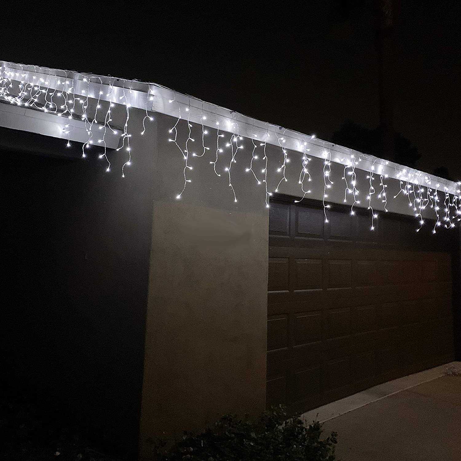 - Our LED icicle Christmas lights have 672 bright white led bulbs with clear wire. Lighted length of 66 feet. Features 8 lighting modes. Low voltage.