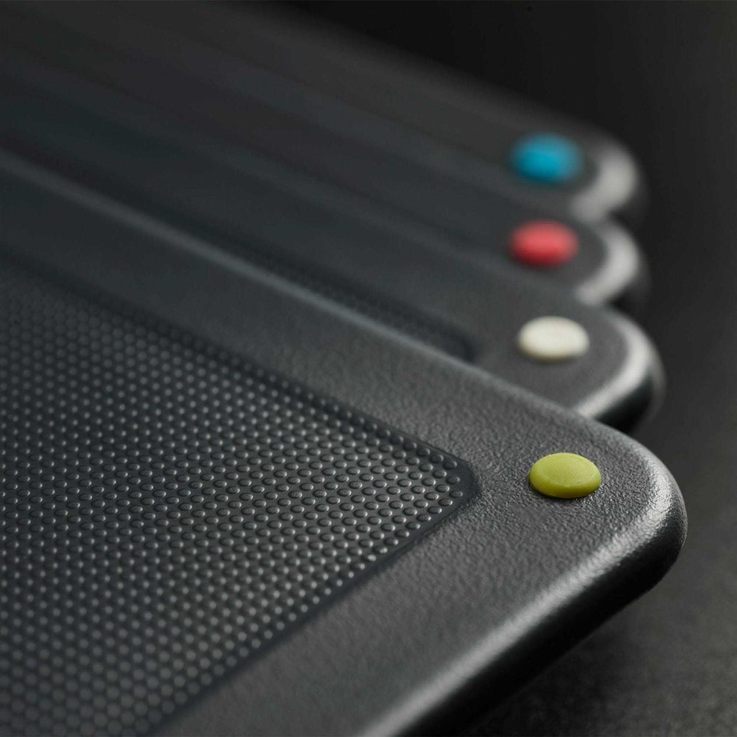 - Double-sided boards with knife-friendly, textured cutting surfaces and non-slip feet