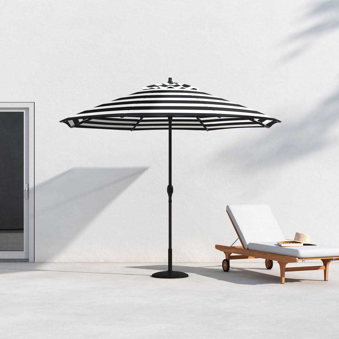 A shady spot on a warm day offers a perfect opportunity to enjoy the outdoors, at least until the sun shifts and cuts your relaxation short. With the California Umbrella Casa Series 9′ Market Umbrella, you’ll always be sheltered from the sun’s powerful rays, whether it is low or high in the sky. The user-friendly crank open and auto tilt system assures convenient shade all day, even when the sun is not directly overhead. Once the canopy has been easily opened by turning the crank, simply continue to turn the crank until the canopy is tilted to your desired angle for relief and protection from the sun. Its high-quality aluminum construction also provides resilience and strength for this umbrella, ensuring the frame withstands both winds and use. A series of eight aluminum ribs reinforce the canopy from the tip of the rib all the way to the resin hub so you can open and close your umbrella without fear. In addition, the beautiful market umbrella design and vibrant canopy color choices make this umbrella the perfect choice to complement your other patio furniture. Guarantee that you can stay comfortable and covered through each sunny day ahead by ordering this stylish and functional umbrella today!