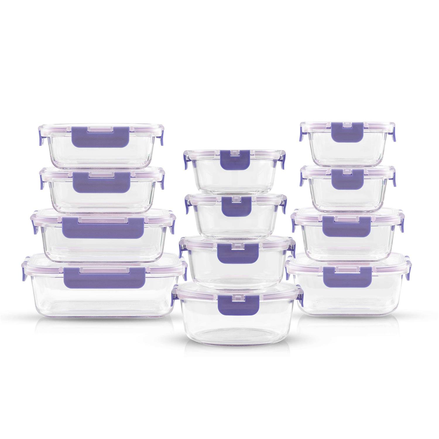 Joyful by JoyJolt 24 Piece Glass Storage Containers with Leakproof Lids Set – Purple