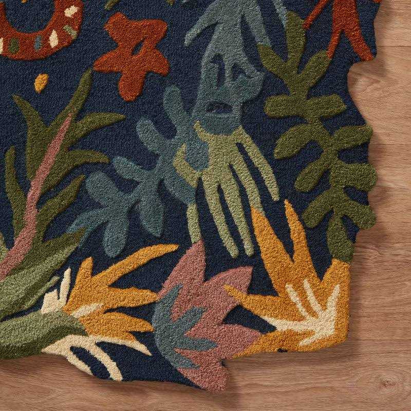 Conceptualized by the highly celebrated design aficionado Justina Blakeney for Loloi. The designs from the Optimism collection offer unique and imaginative motifs that captures attention, effortlessly reinvigorating and harmonizing any decor space. These hand-tufted rugs are durable enough to withstand moderate foot traffic, while providing a easy cleaning experience when compared to other hand made constructions. Prone to shedding, vacuum on the highest setting, and rotate regularly. Professional cleaning is highly recommended. These fashion-forward rugs embody bohemian-inspired motifs effortlessly blended with contemporary design, providing high-end demeanor at an affortable price. Featuring a Navy color base with Multi design accents. Crafted with time-honored techniques that have been passed down and perfected throughout the centurys, these hand-tufted rugs offer a level of quality and durability not found in other hand made rugs. Cotton canvas backing, rug pad recommended to prevent slipping.