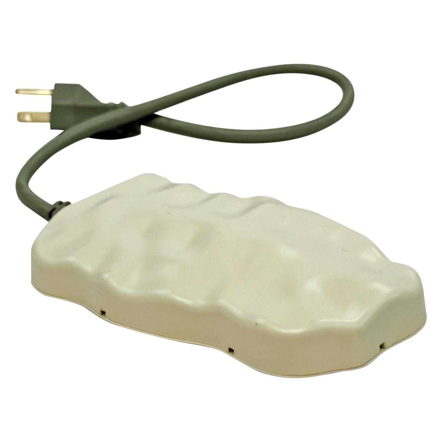Our Solid Aluminium Housing Keeps the Unit from Falling Out Of the Birdbath Safely maintains open water to 20 below zero Fahrenheit Natural colour and 46cm cord blend in with nearly every birdbath Virtually indestructible May be spray painted any colour Durable enamel finish is easy to clean Thermostatically control The attractive rock-like design blends naturally with any birdbath. Spray paint any colour to match any birdbath. Will not calcify, rust, or leave stains in birdbaths. Won’t burn or melt plastic birdbaths. Available in 80 watts for even the largest of bird baths. MET listed. Made in China K & H Manufacturing Size: 80 watts Our solid aluminium housing keeps the unit from falling out of the birdbath and the attractive rock-like design blends naturally with any birdbath.
