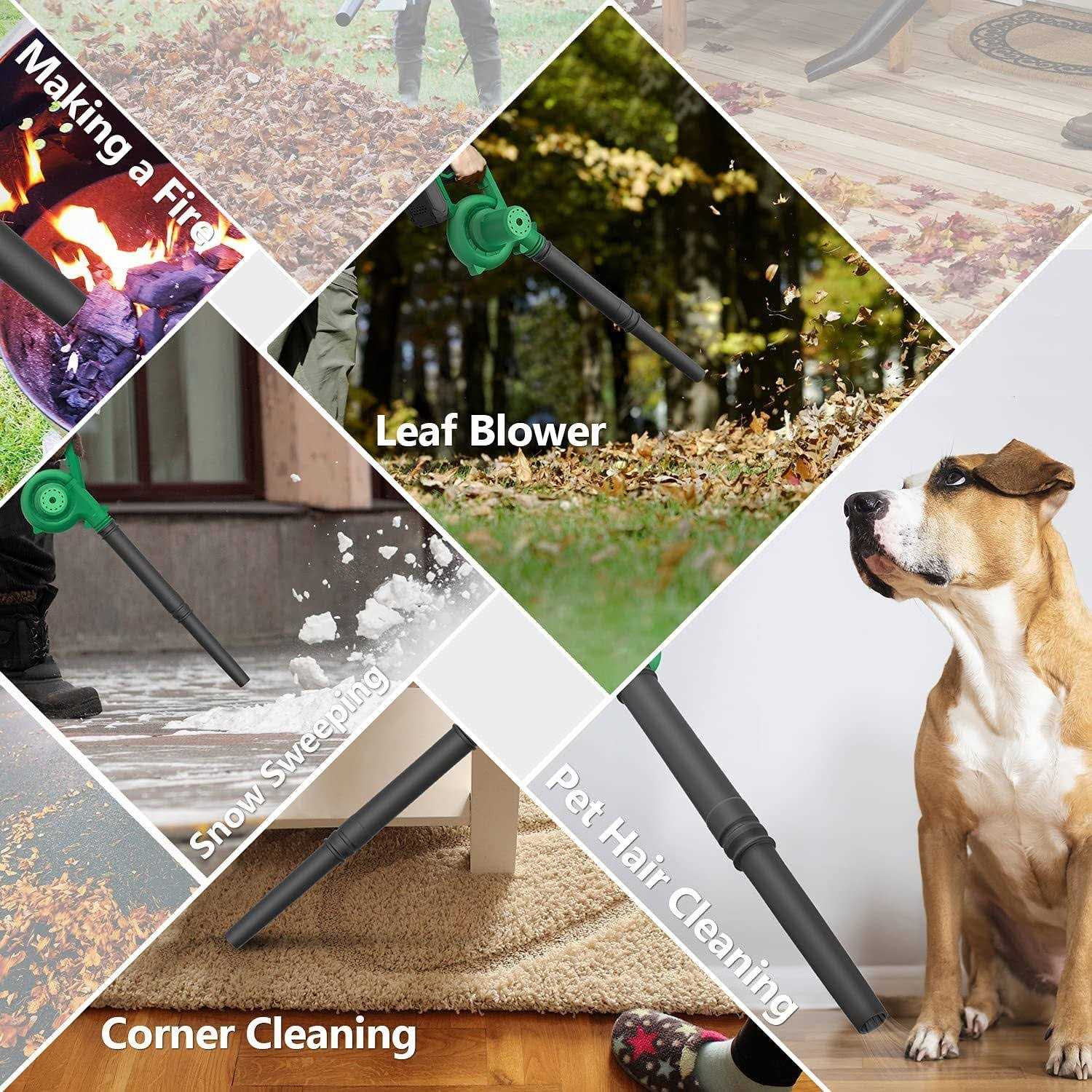 No Cords, No Limits Without maintece headaches of gasoline blowers, without the area restrictions of corded blowers, a battery operated leaf blower will make your cleaning tasks easier and faster. It only takes 60 minutes (2 times as fast as normal) for a full charge. And the power indicator ensures you to get the battery level at any time (package includes battery and charger). Strong Blowing Power If you don’t want to endure the most tedious chore of raking up the yard’s endless leaf blankets, buy a strong enough blower. Turbofans & all-copper motors provide up to 20000 r/min and 150 CFM strong power, keep running at top speed for 20 minutes. Get your work done quicker! 50% Less Noise,Variable-Speed Perform your lawn care work without the loud noise that comes from a gas-powered engine. And please note that the wind speed will increase as you press harder. This allows you to switch between different cleaning tasks at any time. International products have separate terms, are sold from abroad and may differ from local products, including fit, age ratings, and language of product, labeling or instructions. International products have separate terms, are sold from abroad and may differ from local products, including fit, age ratings, and language of product, labeling or instructions.