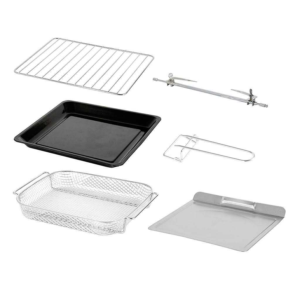 Fry bake toast and broil with the Kalorik 22 Quart Air Fryer Toaster Oven. This innovative and multifunctional appliance uses Rapid Hot Air Technology to cook food faster and make meals healthier. The air frying mechanism works by circulating super hot air around your food. This delivers the same crispy texture and rich flavor of your favorite fried foods with little to no oil. That means less fat and calories The Kalorik 22 Quart Air Fryer Toaster Oven not only functions as an air fryer it can also be used as your regular everyday toaster/convection oven. The appliance features easy-to-use chrome-plated knobs with toast air fry bake and broil functions. The Kalorik 22 Quart Air Fryer Toaster Oven contains six heating elements four on top two on the bottom. A built-in 60-minute timer and adjustable thermostat of up to 450#176;F let you customize cooking for every dish. Meanwhile a glass door allows for easy monitoring. An auto-shutoff safety feature automatically stops operation when the door is open. The appliance comes with a baking pan air frying basket air rack tray handle and crumb tray.