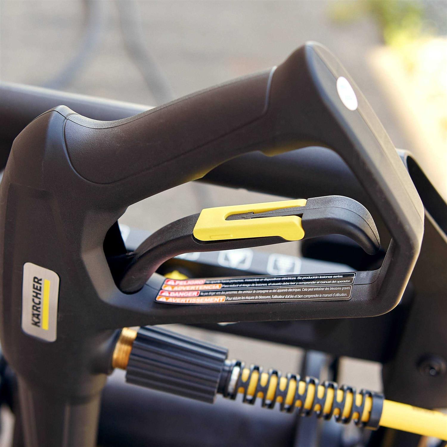 Take some of the pressure off your heavy-duty cleaning routine with this 2300 PSI electric power washer featuring a quick-connect steel wand and several spray nozzles. A pressurized reel keeps the hose under wraps to ensure your space stays organized and clutter-free when not in use. From Karcher.