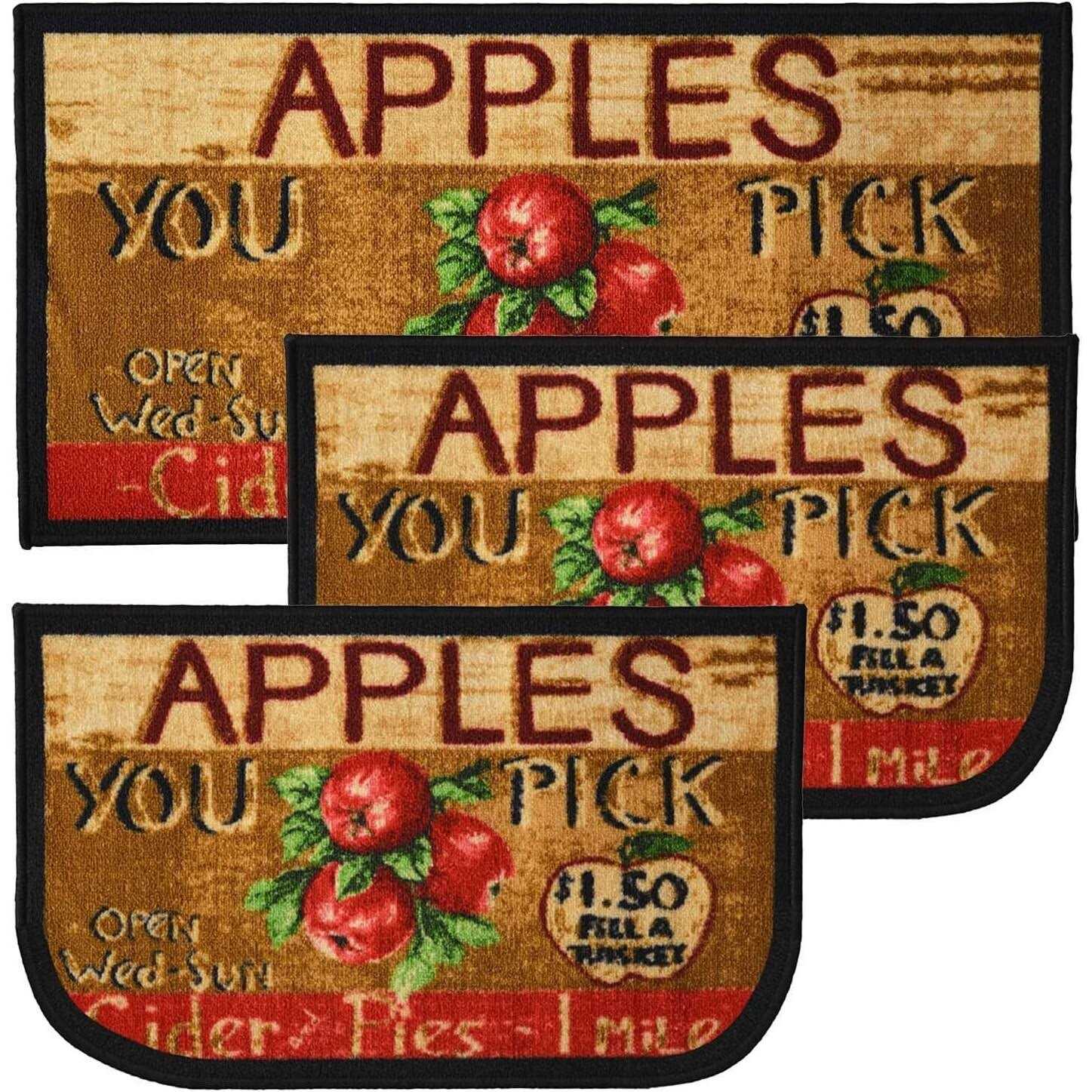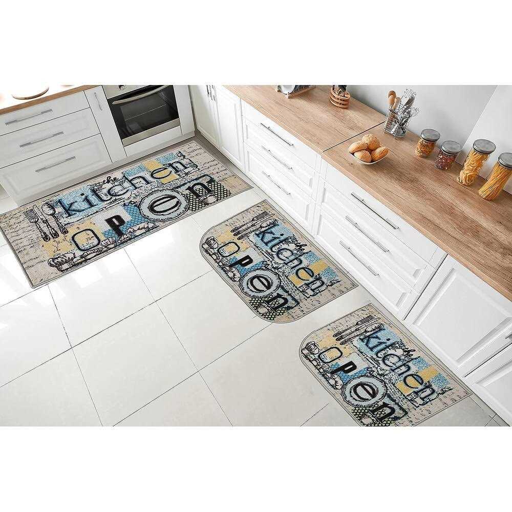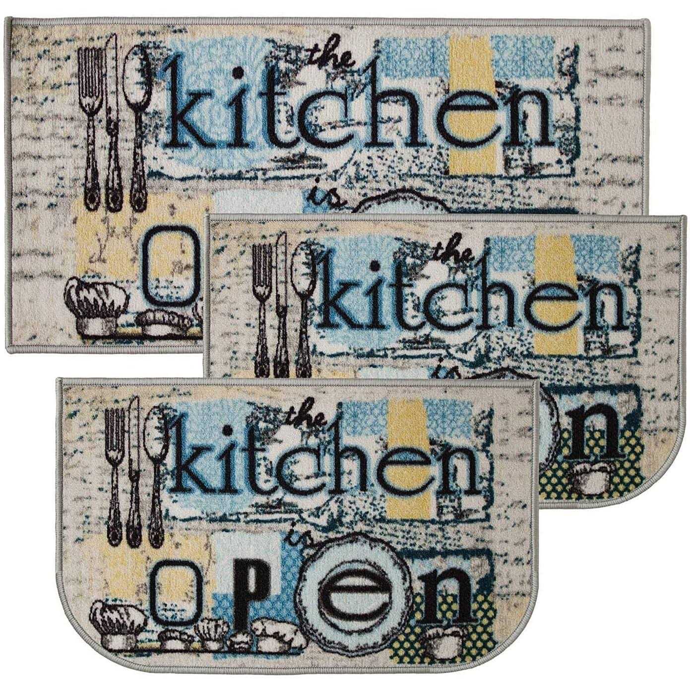 Kashi Home Open Kitchen 3PC Kitchen Rug Set, (2) Slice 18 inchx30 inch Rugs, (1) 20 inchx40 inch Mat, Non-slid Latex Back, Size: 3 PC Set