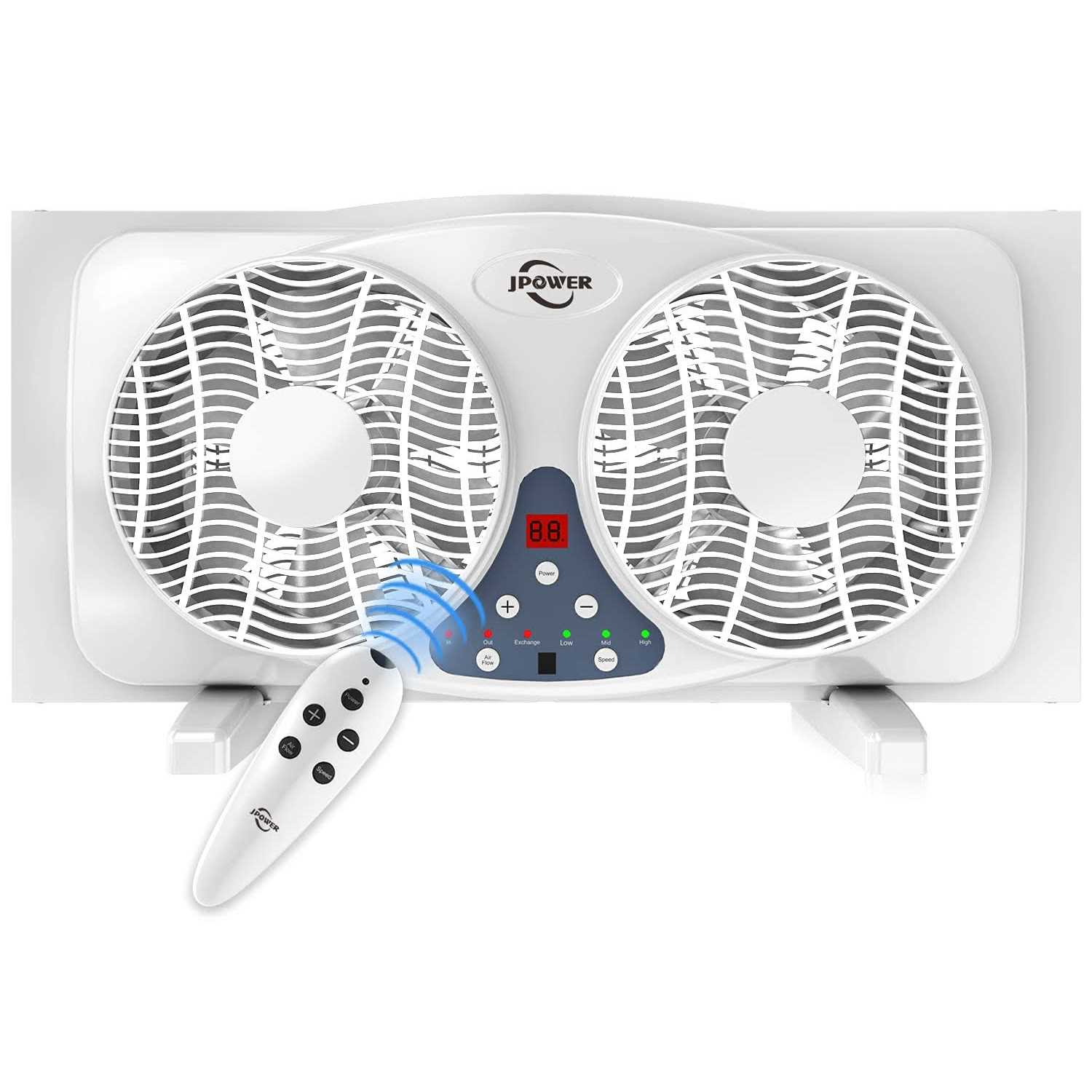 JPower 9 inch Twin Window Fan with Remote, 3-Speed Reversible Air Quiet Flow and Thermostat Control,ETL Safety Listed