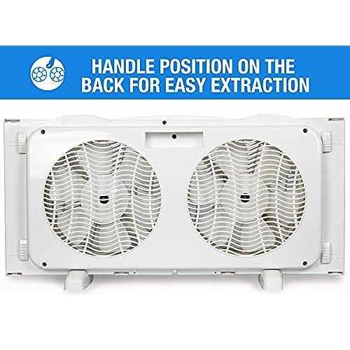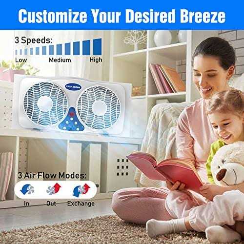 KEN BROWN 9 Inch Twin Window Fan With Remote and Thermostat, 3-Speed Twin Reversible Air Quiet Flow and Thermostat Control