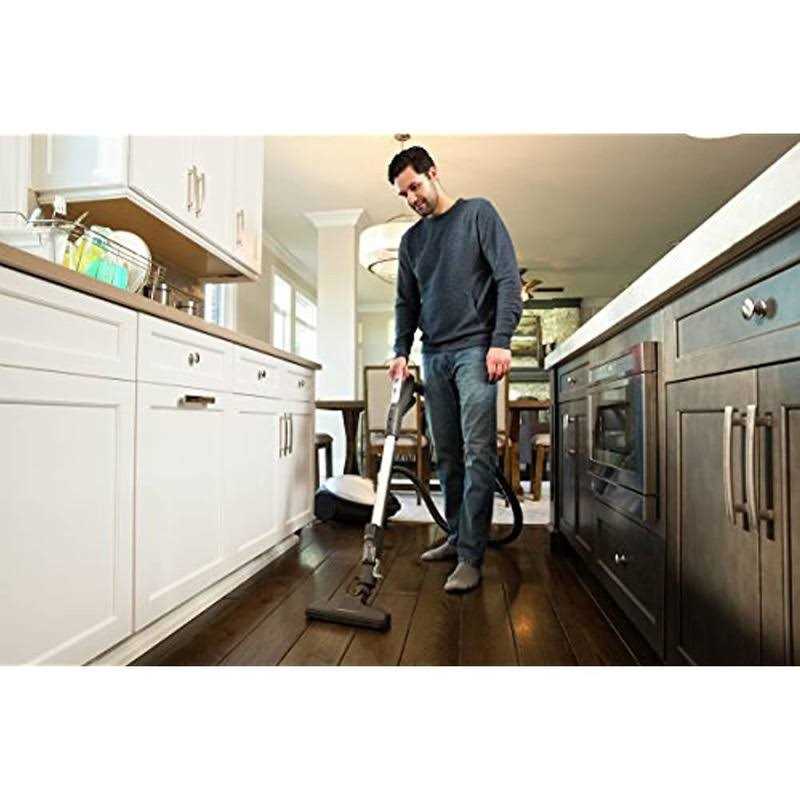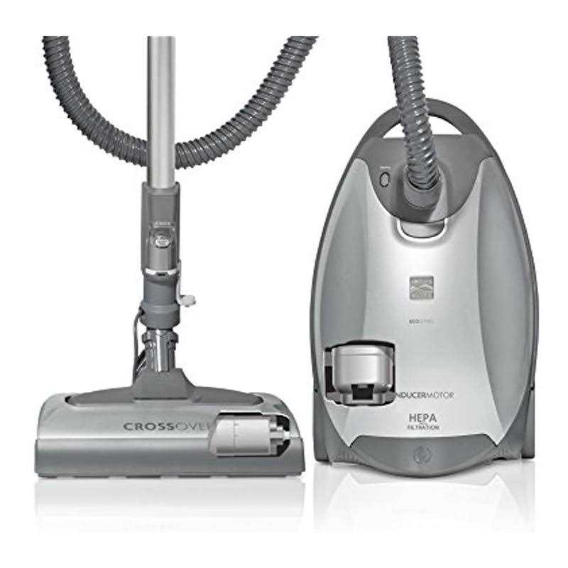 The Kenmore Elite CrossOver Bagged HEPA Canister Vacuum provides versatile cleaning convenience. Dirt, pesky pet hair, allergen-inducing dust and dander are no match for this multipurpose all-floors design, which cleans all surfaces from hardwood, laminate to pile carpet with ease. The Motorized Pet Power Mate attachment lifts dander, stubborn hair and more from carpeting, baseboards, and furniture without issue, and the robust design eliminates pet hair from tangling around the brush. Kenmore Elite bagged vacuums with the enhanced HEPA certified filtration system capture 99. 97% of debris, trapping dander, dust particles, odors, pollen and bacteria inside the vacuum, reducing the number of allergy-induced pollutants in the room. Your Kenmore Elite vacuum is designed to tackle tasks with incredible power and ease. The 2-motor system excels in suction strength with a motor that gives you 20% more air power than a conventional upright vacuum motor. Integrated bare floor brush on the Exclusive CrossOver handle makes it easy to switch floor surfaces from carpet to linoleum or hardwood. Pick up pet hair and suck up dust without having to bend down to adjust the brush height. LED light sensors not only let you detect dirt being picked up, but will illuminate when the bag has reached capacity. 4 accessories included are a crevice nozzle to clean hard-to-reach places, an upholstery brush for furniture, curtains, stairs, van and car seats, a dusting brush for corners, baseboards and cabinets, and a fan tool for those edges that collect dirt and dust. All attachments are stored onboard the unit for easy access and storage. Swivel steering easily maneuvers around and under furniture. This lightweight handy small appliance includes a handle for flexible cleaning and easy transport, while smooth-rolling wheels maneuver easily around corners. Make housework less of a hassle, by investing in this well-made, reliable bagged canister vacuum from Kenmore.