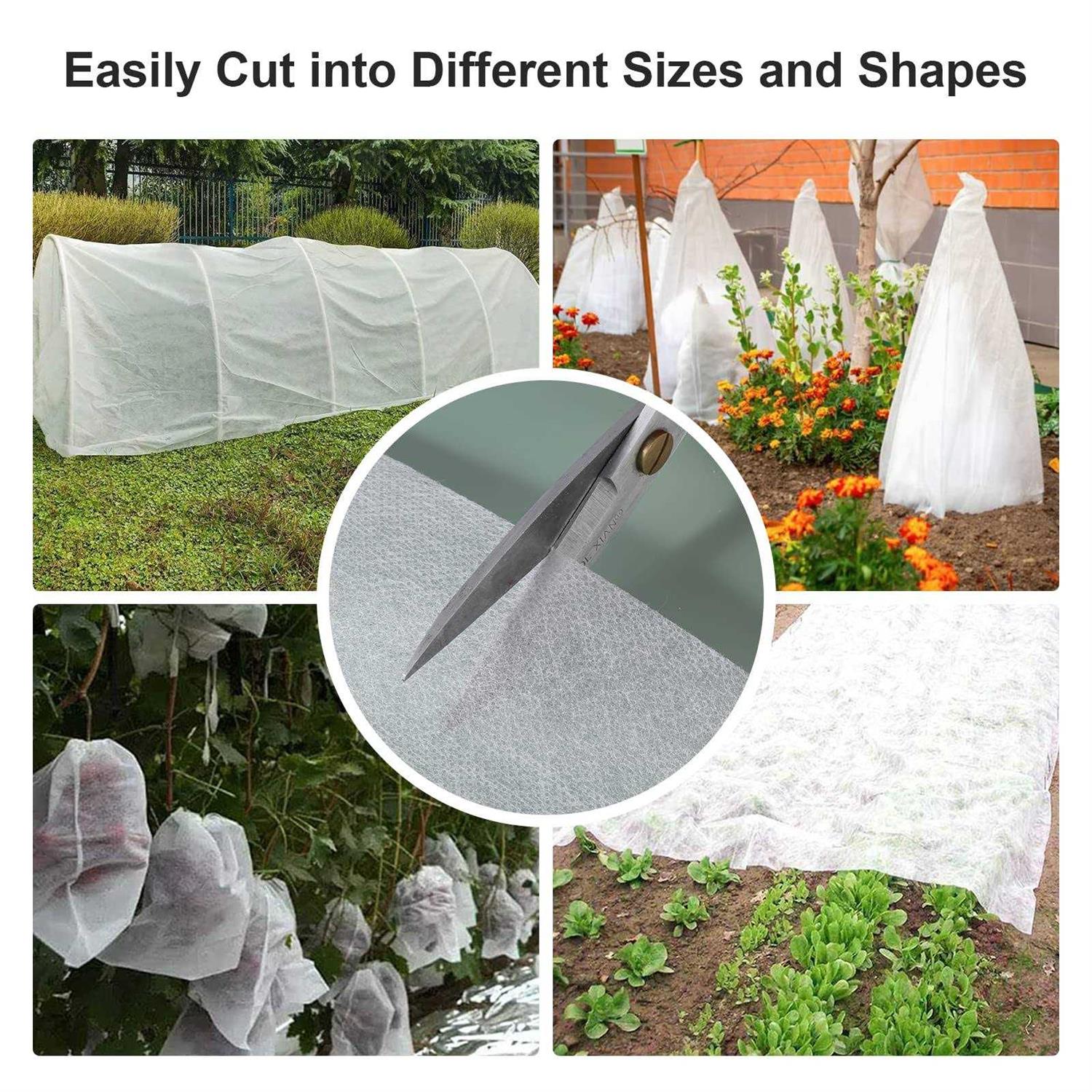 【Perfect Size】 Package: 1 piece of 10x30ft plant cover, white. You can cut this plant blanket into different sizes for different applications. 【High Quality Material】The plant frost cover material is 1.0 oz/yd² non-woven polypropylene fabric which is lightweight breathable and durable. The plant row cover not only can work as a barrier against snow and frost , but also can be a great tool for germination and good for rapid seedling growth. It is lightweight enough for allowing air, water, moist to reach your plant personally as well as not harmful to its growing process. 【Wide Application】 The plant covers is very suitable for the growth of plants, trees and vegetables. Not only protects your plants from insect, birds and strong sunshine during spring and summer, but also can provide protection from frost, wind, snow, hail and low temperature in fall and winter. 【How to Ues】 You can directly cover the plant with frost cloth and fix the edges with stones, soil and sticks. You can also support the floating row covers with garden hoops. Provide enough breathing and growth space for plants. You can also cut your plant covers frost blanket into different sizes for different uses.