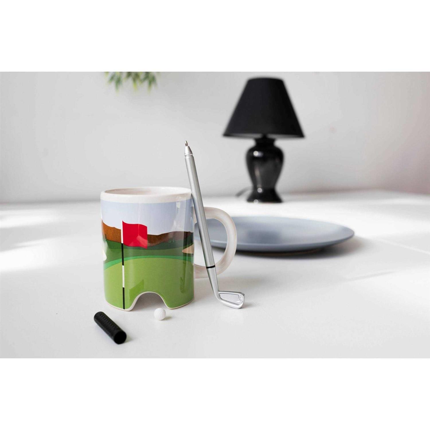 Dreaming of going to the course? With the Putter Cup Golf Mug, you can practice your game all day, every day! The putter doubles as a ballpoint pen, so you can keep track of your score. Set includes a mug, one ball and a putter/pen. This is the perfect mug for golf enthusiasts!