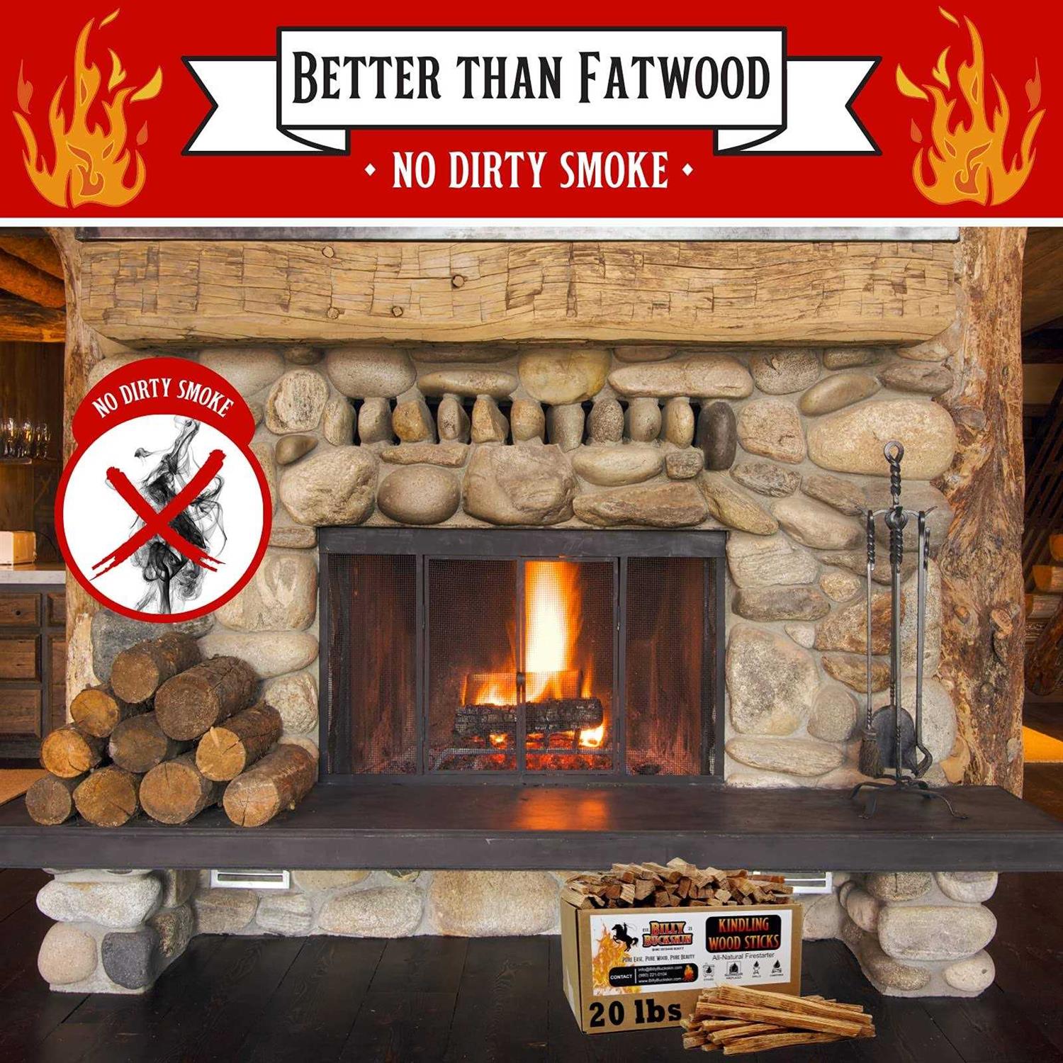 QUICK LIGHTING – Billy Buckskin Co. Kindling is extremely quick lighting. You can start a fire with just 3 sticks. Each stick is cut to just the right size so that it lights quickly and continues to burn long enough to light the rest of the wood on a fire 100% ECO FRIENDLY – All our kindling is made from trees in Mexico. No chemicals are added to the kindling during the manufacturing process. Each stick is completely eco-friendly and natural EVEN BETTER THAN FATWOOD – Billy Buckskin Kindling is even better than fatwood. Unlike fatwood, our kindling burns with a clean smoke. It will not leave the same thick residue that the sap filled pine fatwood leaves KILN-DRIED – All the Billy Buckskin Kindling is kiln-dried to ensure that it is as dry as possible. The process of kiln-drying involves heating up the wood to remove the moisture so that the sticks are easier to light. APPROXIMATELY 280 STICKS PER BOX – When you purchase this product, you will receive approximately 280 sticks per box of kindling. It takes 2-3 sticks to start a fire. QUICK LIGHTING – Billy Buckskin Co. Kindling is extremely quick lighting. You can start a fire with just 3 sticks. Each stick is cut to just the right size so that it lights quickly and continues to burn long enough to light the rest of the wood on a fire 100% ECO FRIENDLY – All our kindling is made from trees in Mexico. No chemicals are added to the kindling during the manufacturing process. Each stick is completely eco-friendly and natural EVEN BETTER THAN FATWOOD – Billy Buckskin Kindling is even better than fatwood. Unlike fatwood, our kindling burns with a clean smoke. It will not leave the same thick residue that the sap filled pine fatwood leaves KILN-DRIED – All the Billy Buckskin Kindling is kiln-dried to ensure that it is as dry as possible. The process of kiln-drying involves heating up the wood. It also removes the moisture so that the sticks are easier to light.