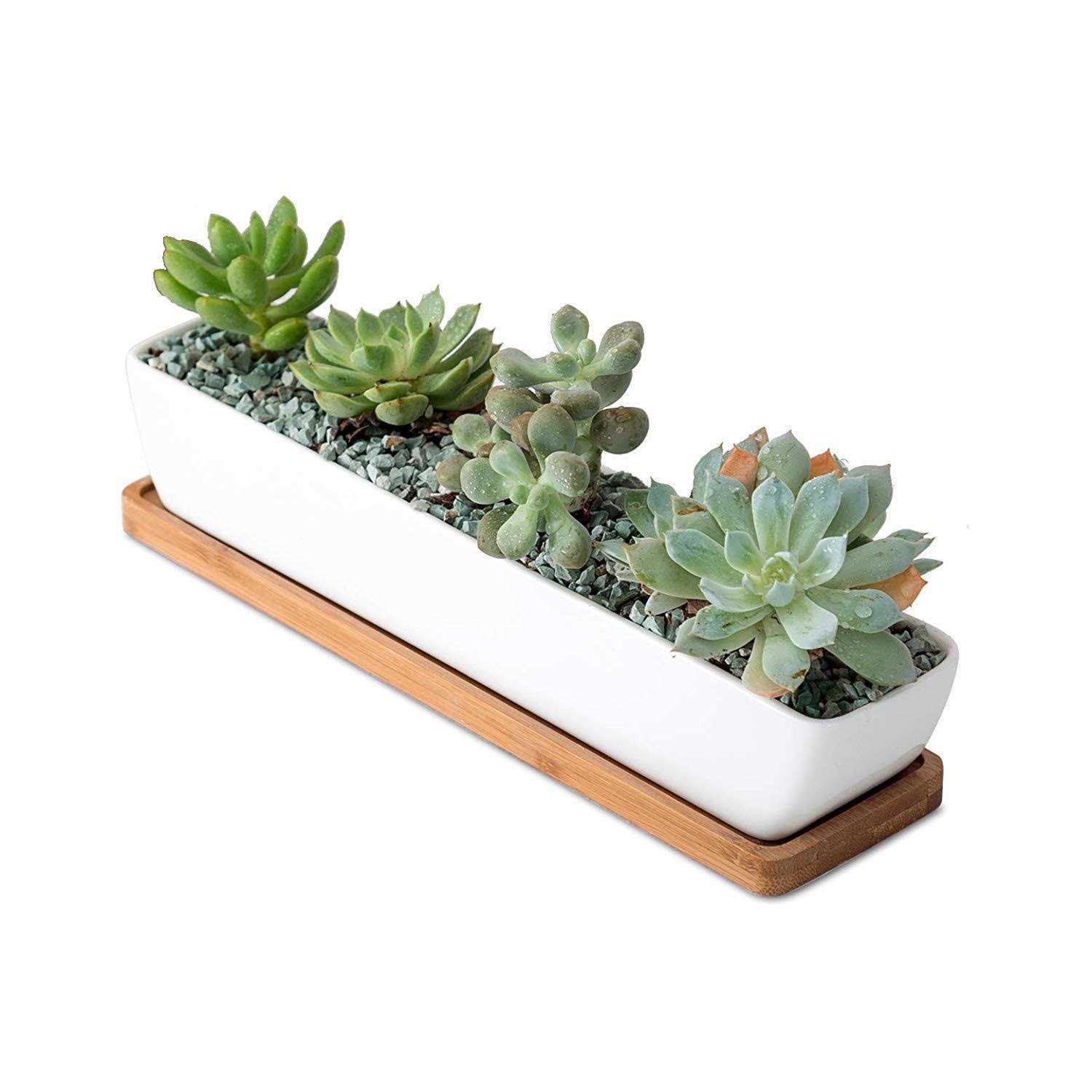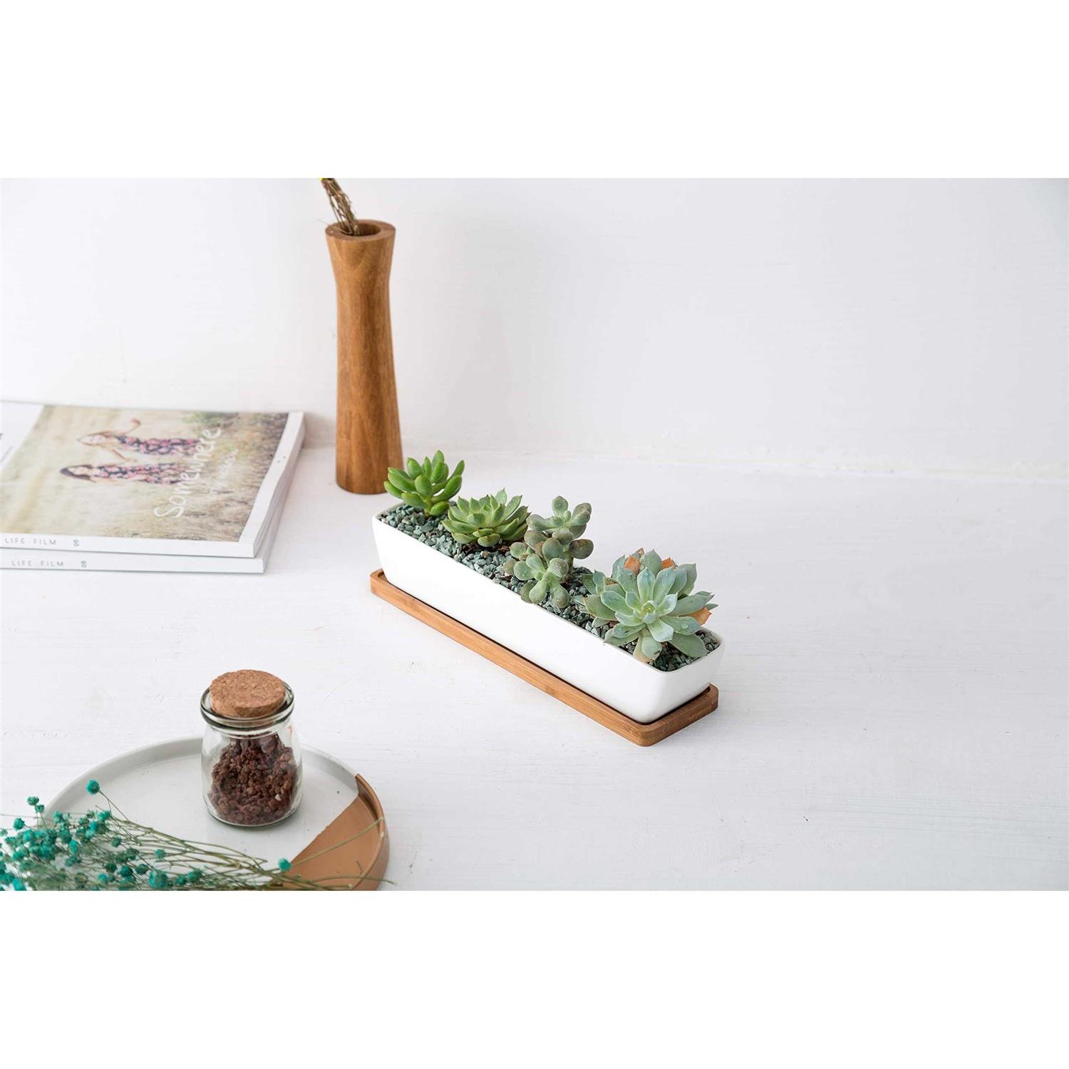 Sea Star 11.1×2.36×1.77inch Long Rectangular Modern Minimalist White Ceramic Succulent