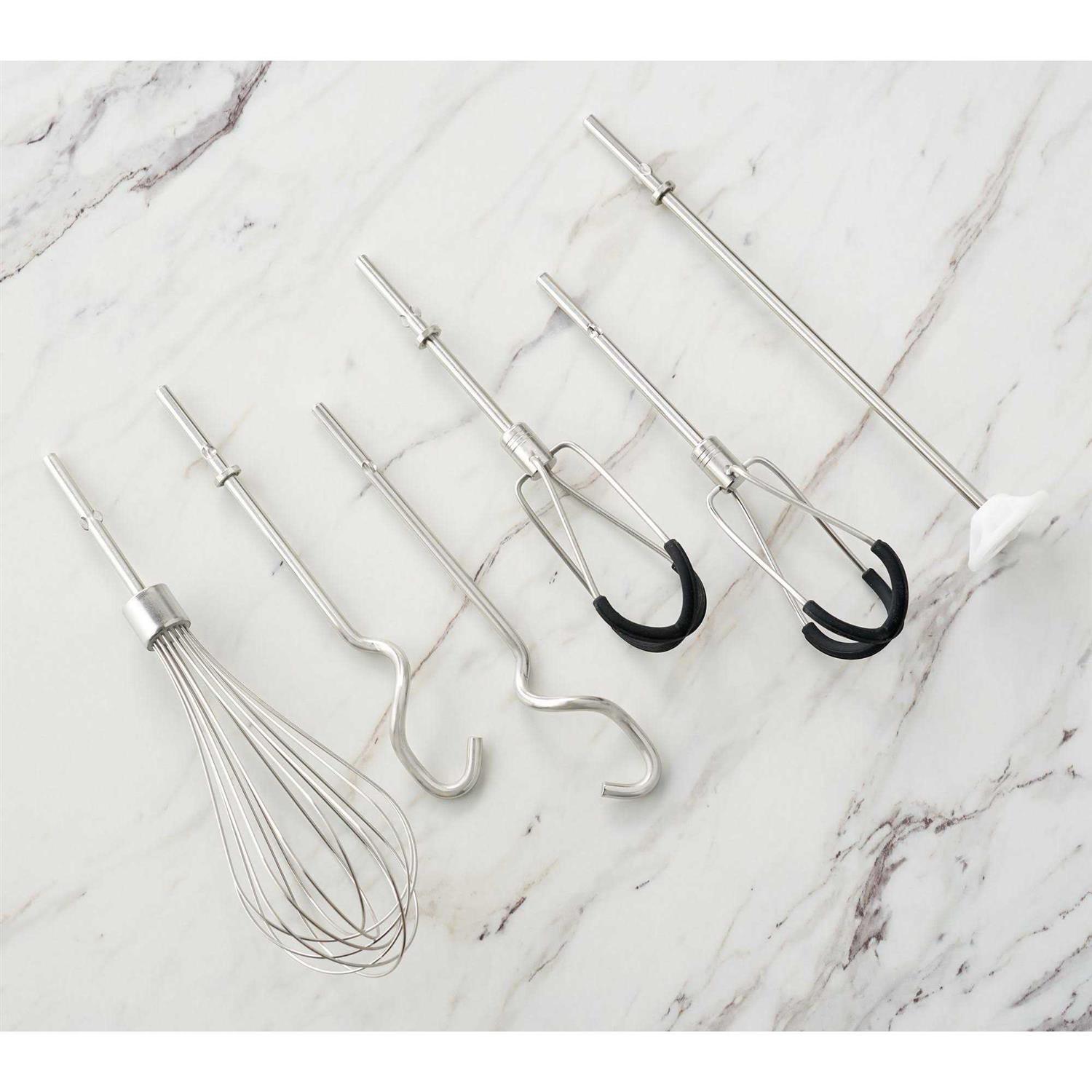 Bakers and home chefs, rejoice! This small-but-mighty KitchenAid digital hand mixer has nine speeds to quickly blend ingredients from a slow stir to a high whip — allowing you to mash potatoes, shred chicken, knead pizza dough, and make salad dressings with ease. The Soft Start feature helps to avoid splattering (goodbye messy countertops!), and an oversized ejector button makes switching out the interchangeable beater accessories a cinch. Use the Flex Edge Beaters to stir batter, blend butter and sugar, and mix frosting. The Dough Hooks are great for combining dry ingredients with liquids. And the Pro Whisk beats egg whites and whips heavy creams and mousse mixtures. Lightweight and portable, this mixer gives you the convenience of doing quick jobs in the kitchen and the confidence to bring your trusted recipes to life. From KitchenAid.