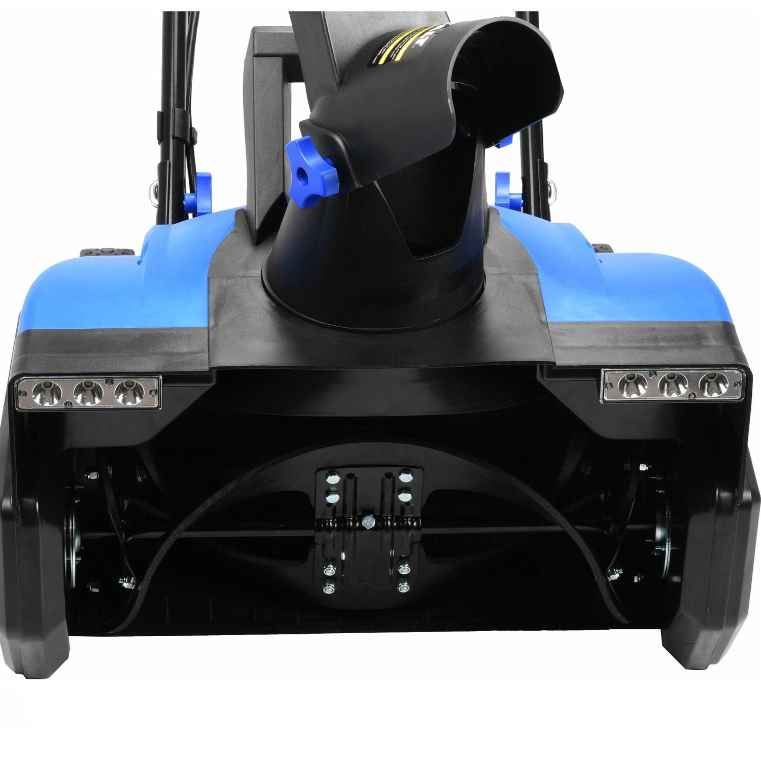 This corded electric snow thrower has a brush less motor that brings higher efficiency and longer lifetime. The brush motor technology is used on corded snow blower with bigger power and durable experience. After dark, the integrated LED lights brightens the way for safer nighttime clearing. Ideal for light duty and mid sized driveways. Rubber auger quickly clears a 21-inch wide by 12-inch deep path in a single pass. The electric adjustable chute control rotates 180o to throw snow up to 26 feet away in any direction! Boasting a 15 amp brush less motor, this snow-throwing dynamo can move up to a great deal of lbs of snow per minutes! Each-glide wheels make the super easy to turn and maneuver. The scraper blade at the base of the unit efficiently scrapes the snow clear to the ground without damaging your deck or pavement. An on-board chute clean-out is included to help you free up a clogged chute in the event of snow jam. The full-loaded unit also features an on-board light so you can clear paths day or night. This model is smart, eco-friendly choice for snow removal this winter. No gas, no oil, no maintenance, no fuss!