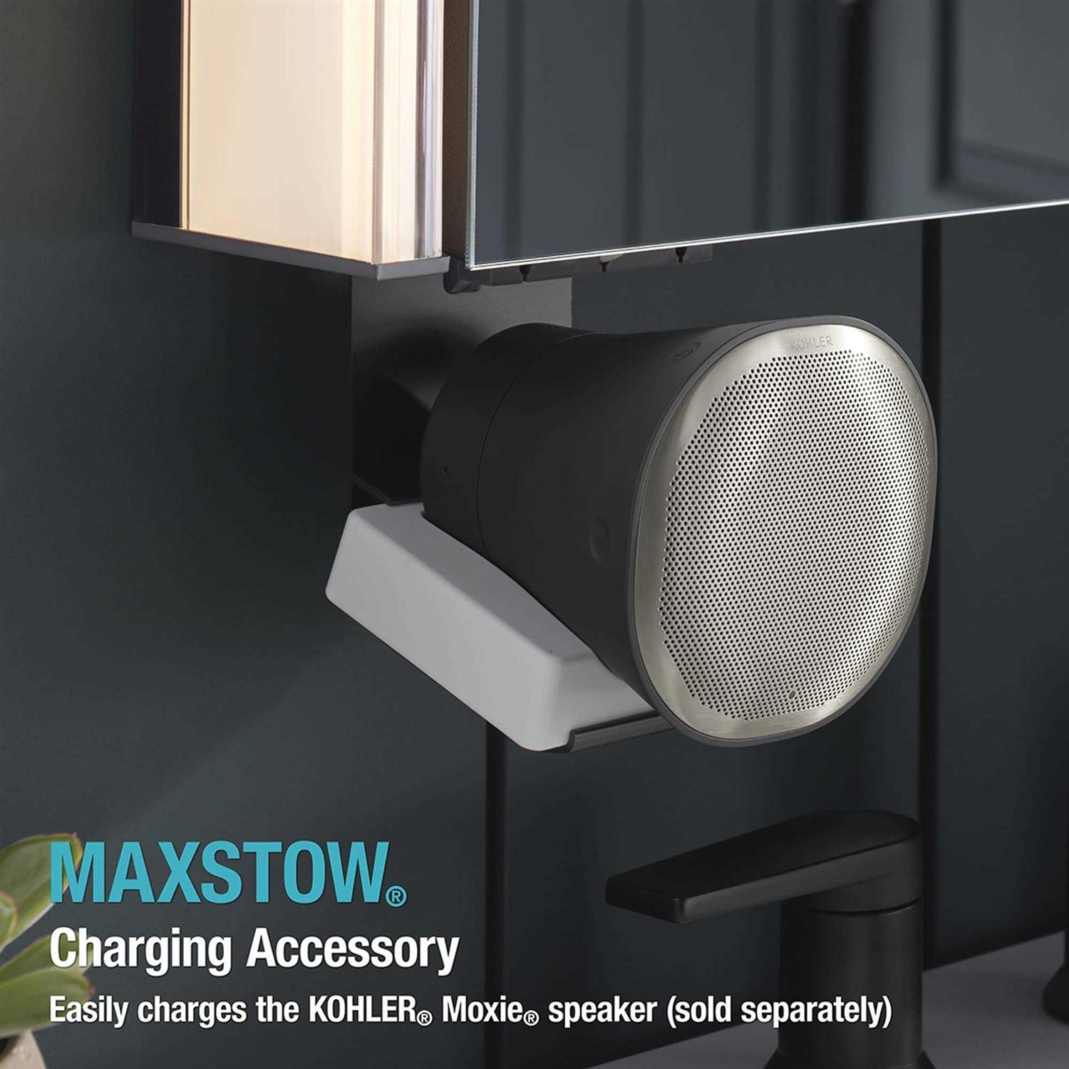 Innovate your vanity space and maximize your bathroom style and storage with the Maxstow 17-in W x 24-in Hlighted medicine cabinet, featuring exterior LED lighting, an interior electrical outlet, and the ability to attach a coordinating Moxie speaker charging dock (sold separately). Staggered shelving holds tall and short items with no wasted space, while interior-door and back-panel mirrors provide reflection whether the doors is open or closed. The slim 3½-in-deep design provides the same internal storage space as traditional 5-in-deep cabinets. Installation is fast and easy right out of the box—simply screw to the wall.