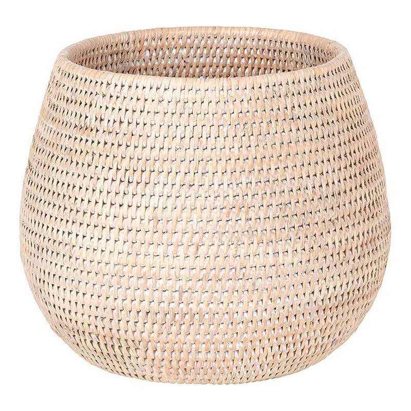 Kouboo La Jolla Coco Rattan Bowl, White-Wash, Large Planter