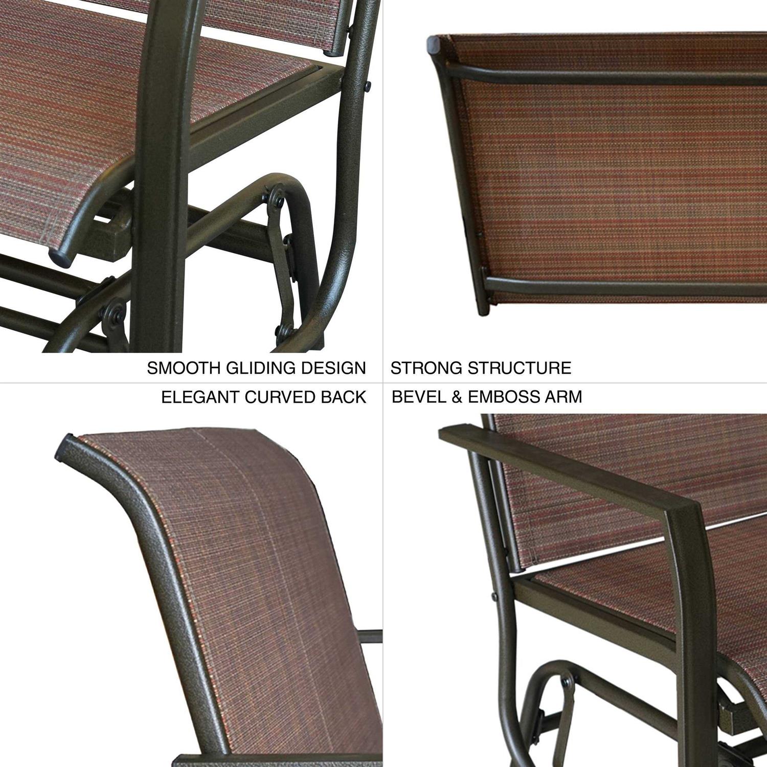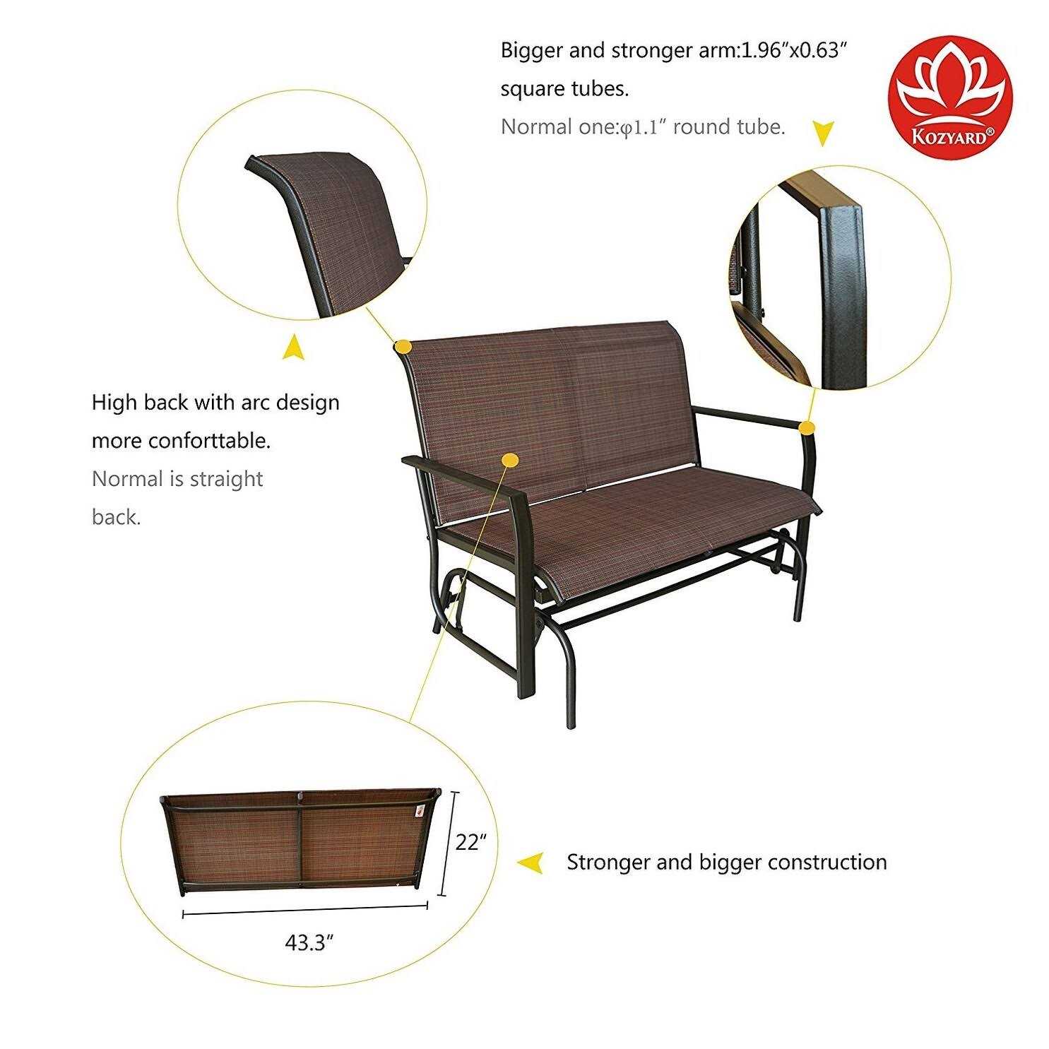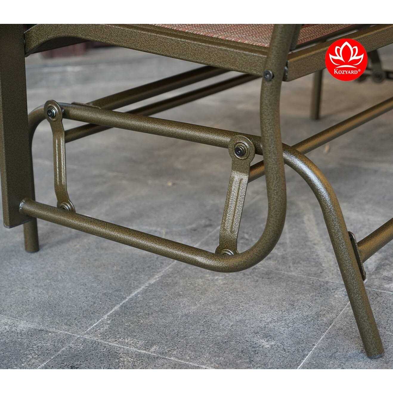 The KOZYARD Cozy 2-Person Glider, with its classic look, offers you a comfortable and attractive outdoor loveseat. This rocking swing bench will let you and your family sit back, relax and enjoy your outdoor time. Our state-of-the-art gliding mechanism ensures a quiet, smooth rocking experience. It is right at home on the front porch, the back deck, or next to the pool. This glider is easy to assemble and is destined to become a focal point of your outdoor space.