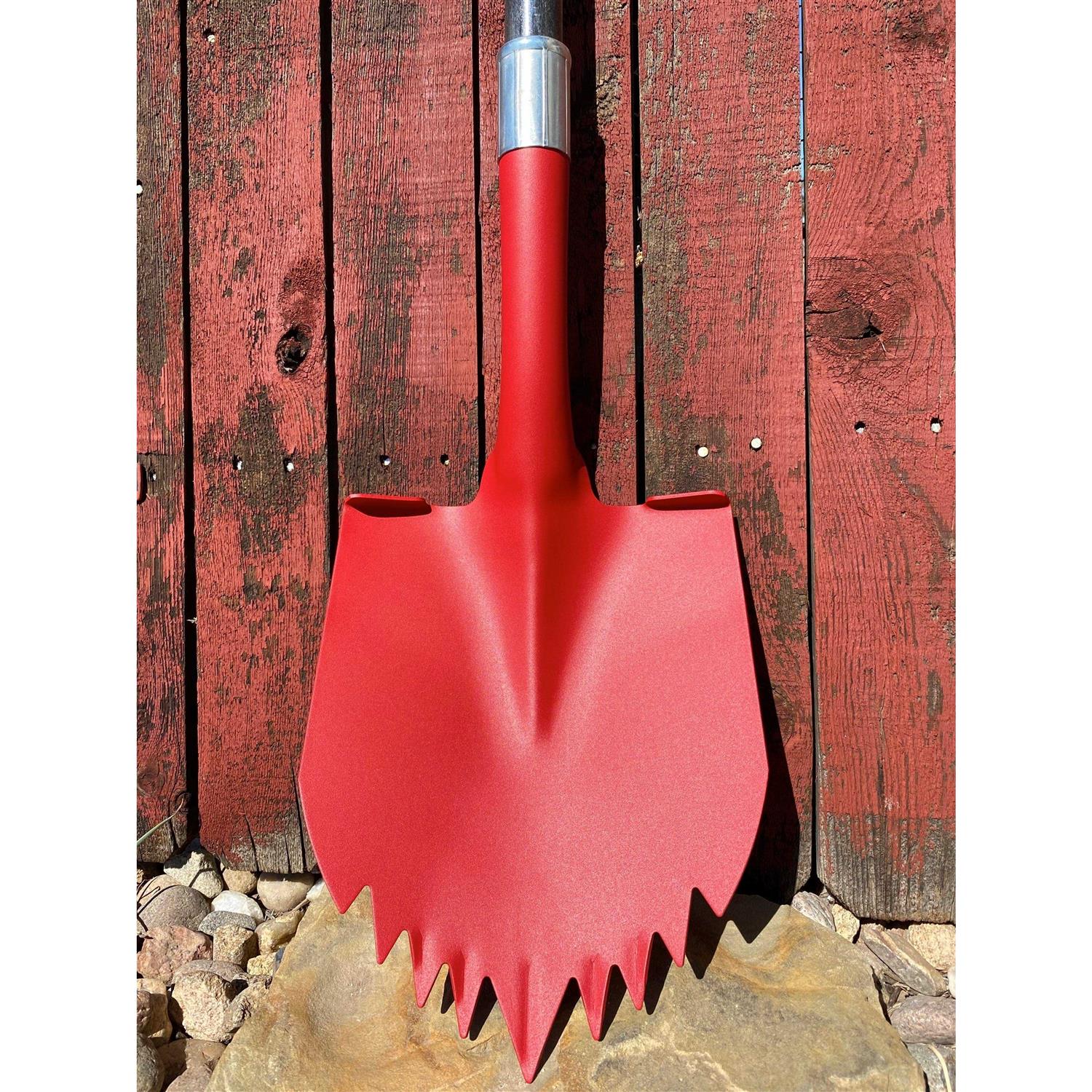 The “Krazy Beaver Shovel” is Made in the USA! Measures 40 inches Total length. Excellent for Camping, Hunting and Off-Road use. The Head: Powder coating used is Cardinal textured red. The great thing about this color is aerosol paint can be ordered to match the color in the event the shovel is used and the powder is scraped off. (Paint cans to be offered soon through Krazy Beaver Tools). Manufactured using Heavy Duty 13 gauge heat treated tempered steel. Twice as thick as a normal residential shovel. Reinforced teeth to prevent bending and breaking. Powder coated both inside and out from the head to handle area to prevent rust. The “Krazy Beaver Super Shovel” can be used for regular digging and in extreme situations can be used to assist in penetrating Ice and Clay. The “Krazy Beaver Super Shovel” is only available in red at this time. Measures 11 1/2” Height X 8 1/2 wide. The Handle: Made of lightweight but extremely strong fiberglass Handle is a dark grey/black color. (Graphite in color) The head to handle connection has a permanently mounted solid 12” fiberglass reinforcing core to withstand breakage during the most extreme circumstances. At the end of the handle under the “D-Grip”, there is a hollow section that can be used for storage of emergency items such as matches, flint, hooks, fishing line, batteries, etc… The D-Grip: Made of solid Polymer. There is no soft rubber on these grips. The reason for the use of the solid Polymer is because soft rubber overtime begins to break down and becomes sticky. The Lock Pins: These Tab Lock Pins are awesome! Unlike regular PTO or quick release pins, you can actually use gloves. The “Tab” makes it easy to attach or remove from the shovel. In addition to being easy to use, these pins are easy to find when accidentally dropped in the sand or mud, unlike a two piece pin that has a separate pin and wire.