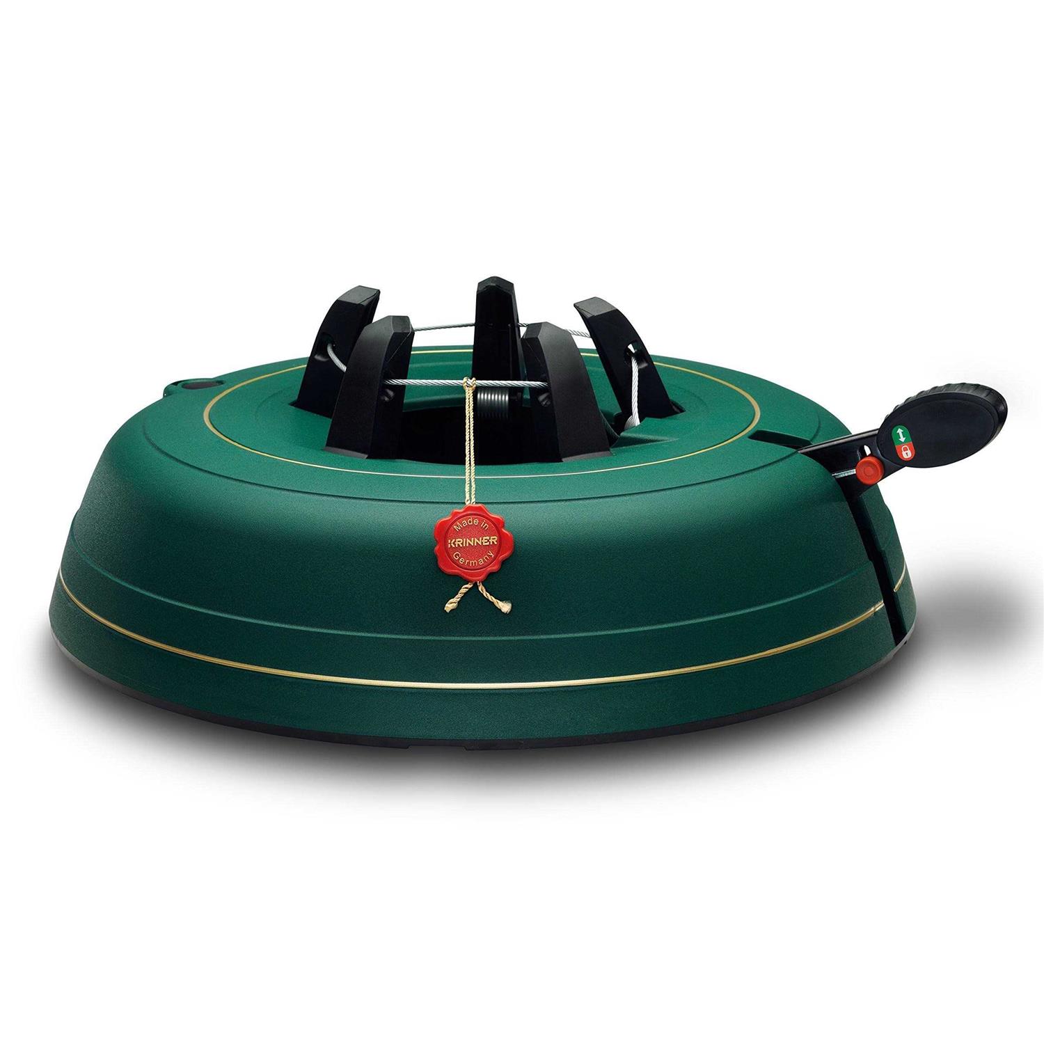 Krinners Christmas Tree Genie XXL makes your tree set up a joy without the traditional Christmas hassle. It will let you set up a 12 foot tree (3.6 meter) in just seconds. Just place your tree in the open stand, hold it straight and pump the foot pedal until the claws have firm contact to the trunk. Lock the foot pedal and you are done. No axe or saw needed. For trunks from 1 to 7-inches (16 centimeter) in diameter. Made in Bavaria, Germany.