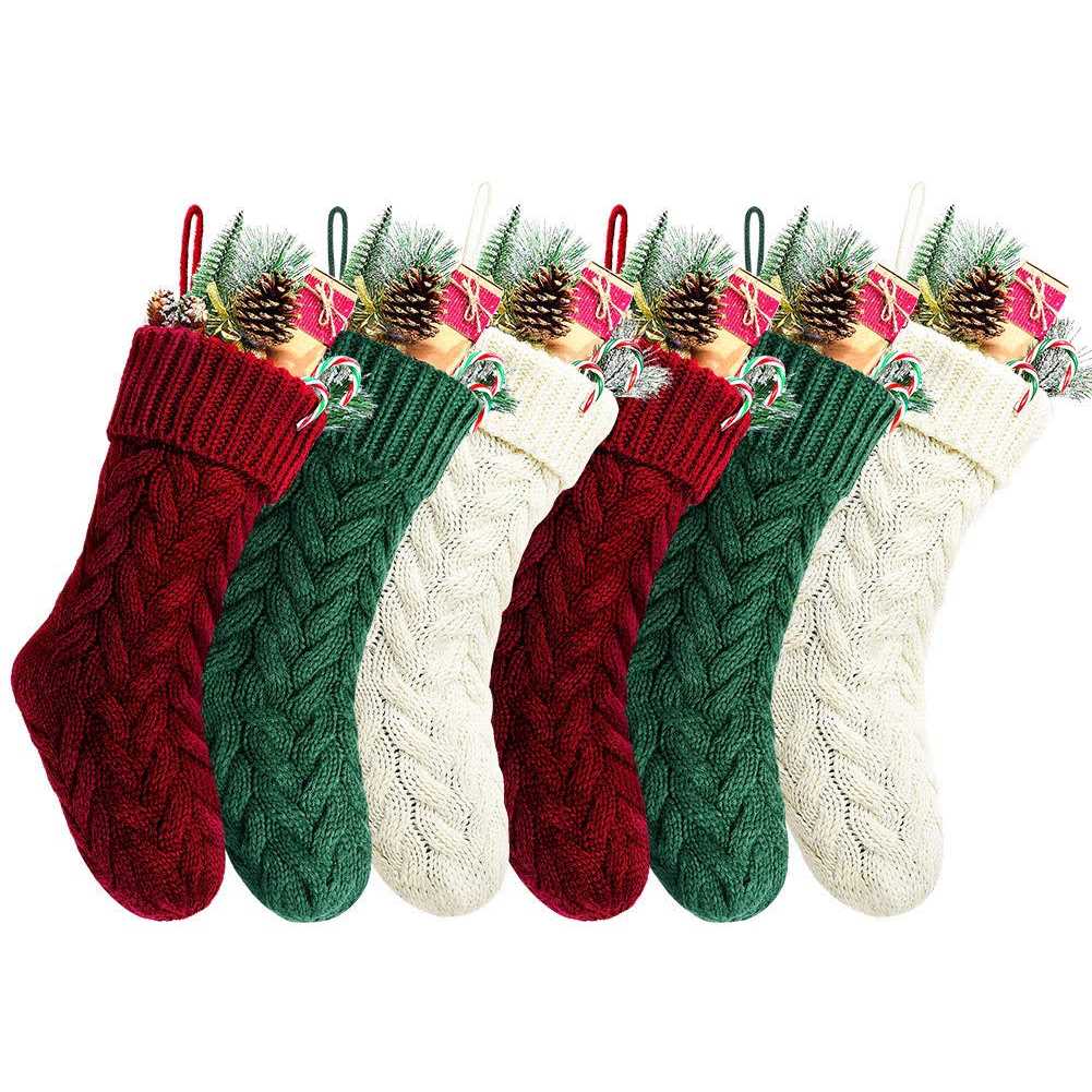 Kunyida 14 Inches Burgundy, Ivory, Green Knitted Christmas Stockings,6 Pack