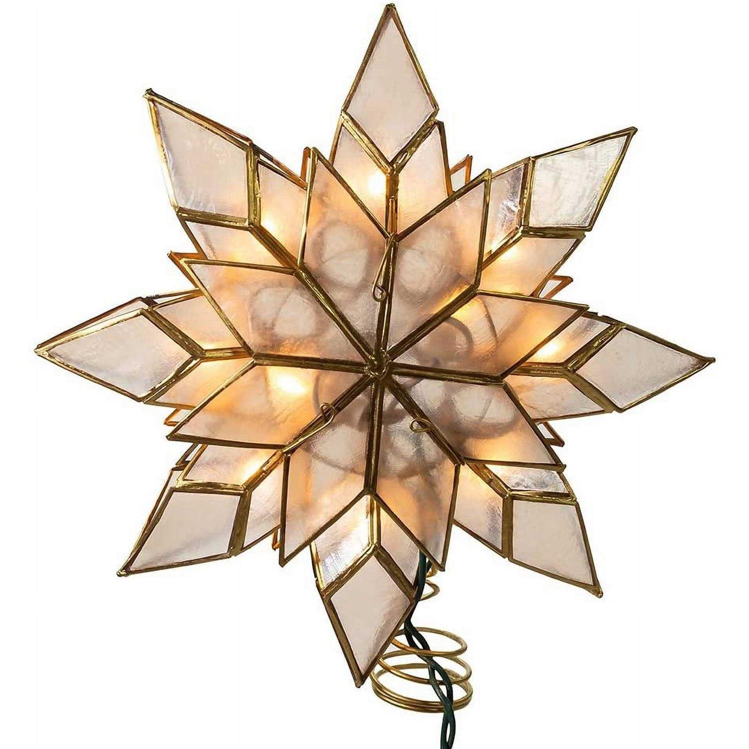 Kurt Adler 8.5 inch Capiz Star Tree Topper with 10 Clear Lights and 1 Spare Bulb