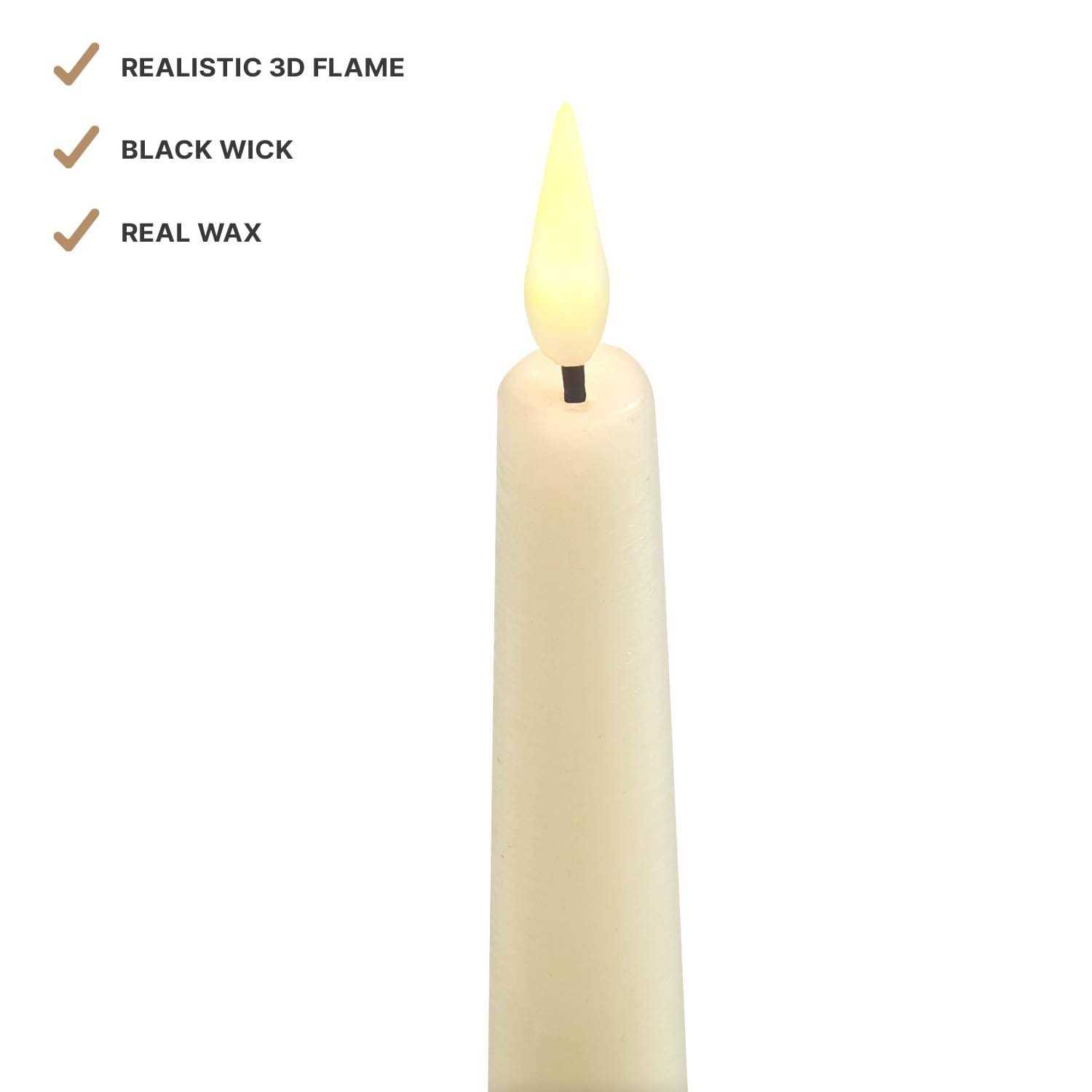 LampLust Infinity Wick Flameless Candles Real Wax Ivory 7 Taper Candles