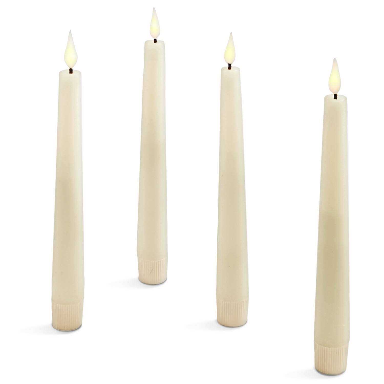 Infinity Wick Flameless Candles, Real Wax, Ivory Distressed Texture 7″ Taper Candles, Set of 4