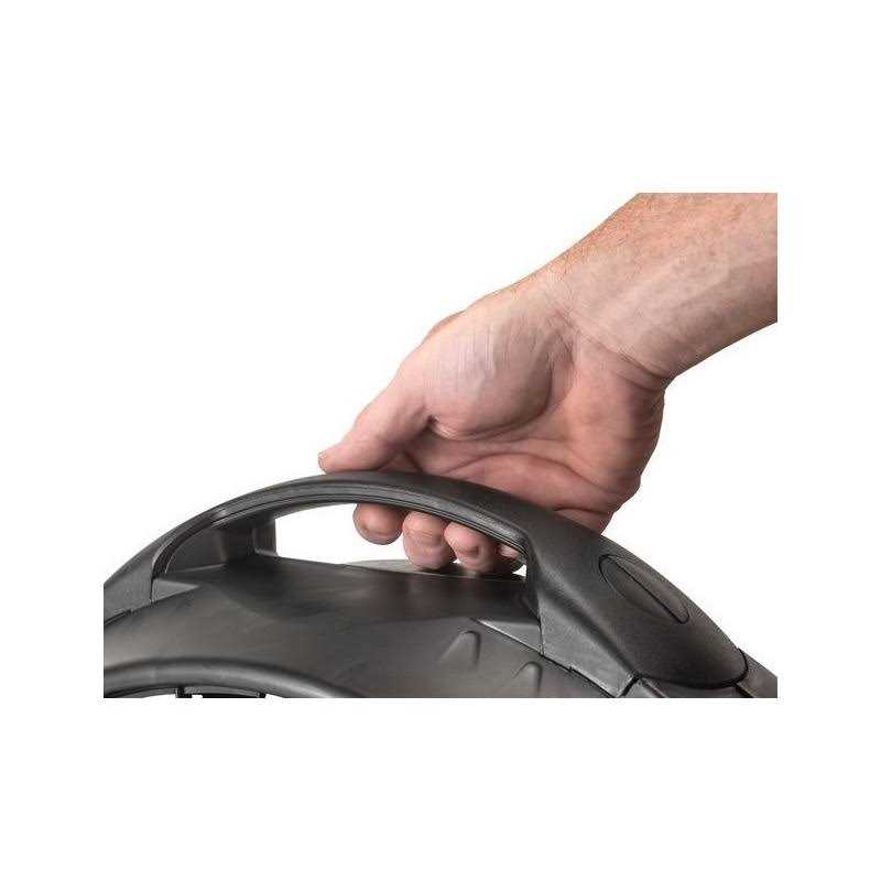 The Lasko 20 inch Wind Machine, in black, lets you enjoy a cooling breeze in larger spaces and rooms. Ideal for powerfully circulating air, this high performance portable fan offers 3 speeds and a pivoting head so you can set it to the speed and angle you desire. You can even place it directly in front of air conditioning vent to quickly circulate air conditioning and boost your chill factor. This portable fan features a built-in, easy-grip handle so it’s simple to transport around your home, business or job site. Durable plastic construction makes it lightweight and immune to rust so you can use it in humid conditions. Equipped with trusted, Blue Plug safety fuse technology, making this fan a safe and an energy-efficient choice.