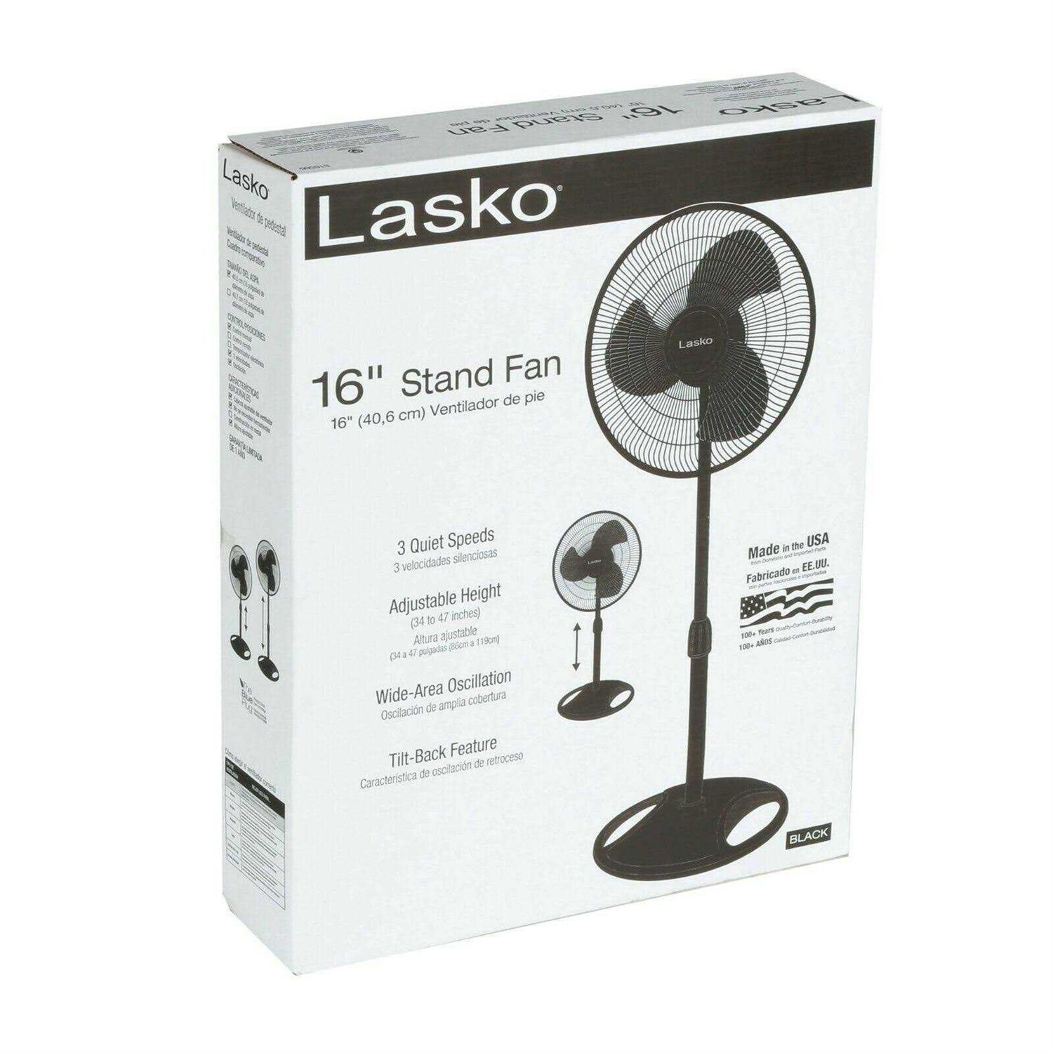 Lasko 16-in. Oscillating Stand Fan, Black