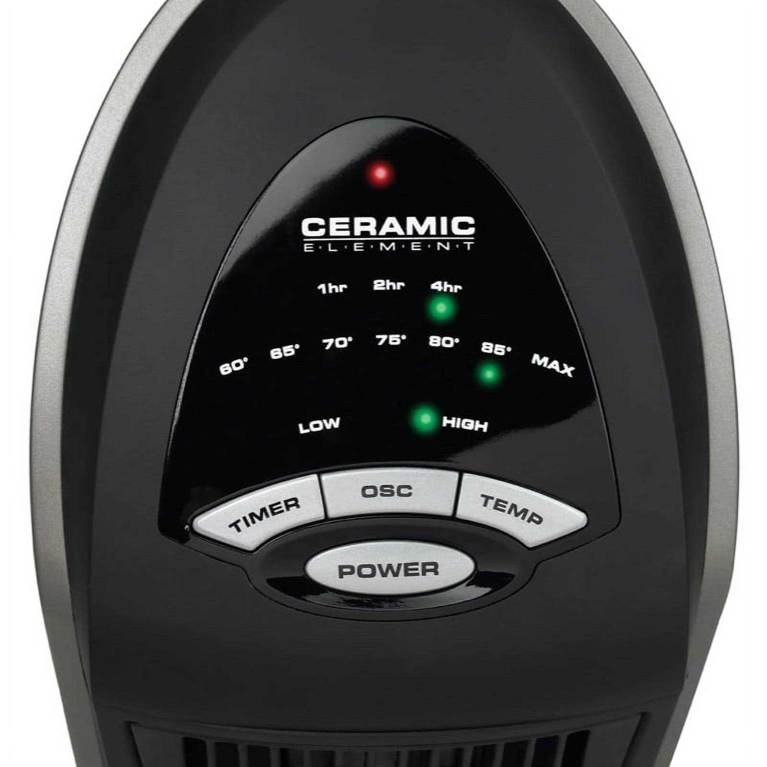 Self-regulating ceramic element Automatic overheat protection Maximum heat power: 1.50 kW Area Heated (Sq. Ft.):300 Lasko Ceramic Tower Heater with Remote Control Lasko’s compact, yet powerful space heater can be easily moved from room-to-room for added warmth. The built-in safety features, elongated ceramic element, and penetrating air velocity provide safe ceramic heat for your home. The built-in timer and wireless remote control make this perfect for the home. Easy to Use Controls Conveniently placed on top of the space heater is an easy to read LED display and controls. Color coded LEDs let you know which temperature has been selected and the length of time the built-in timer has been set for. You’ll also find a LED indicator for high and low heat.